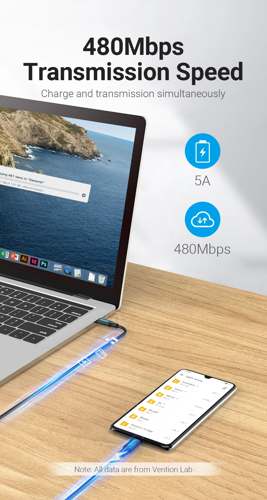 Support 20V/5A, PD100W fast charge, Prolong laptop using time