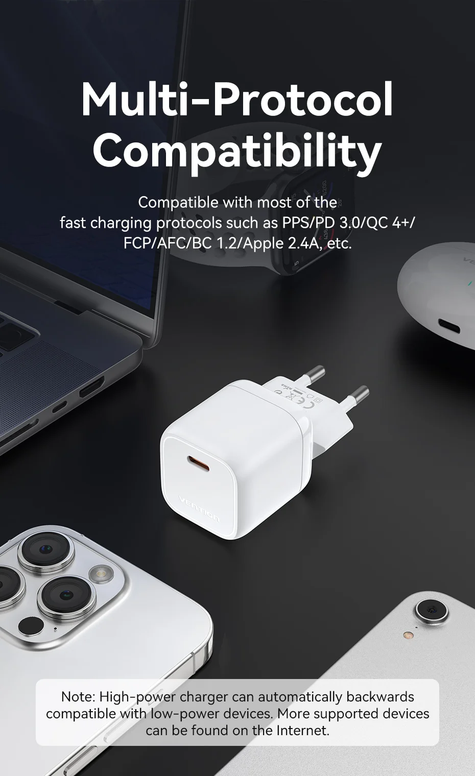 Compatible con la mayoría de los de carga rápida protocolos tales como PPS/PD/3,0/QC 4 +/FCP/AFC/BC 1,2/Apple 2.4A... etc