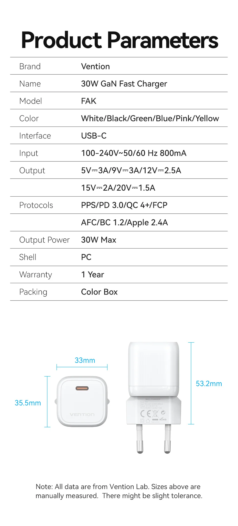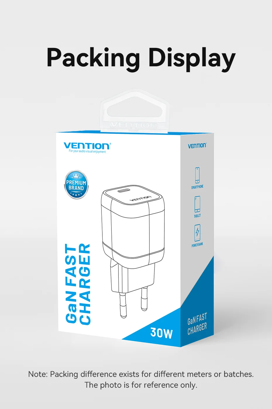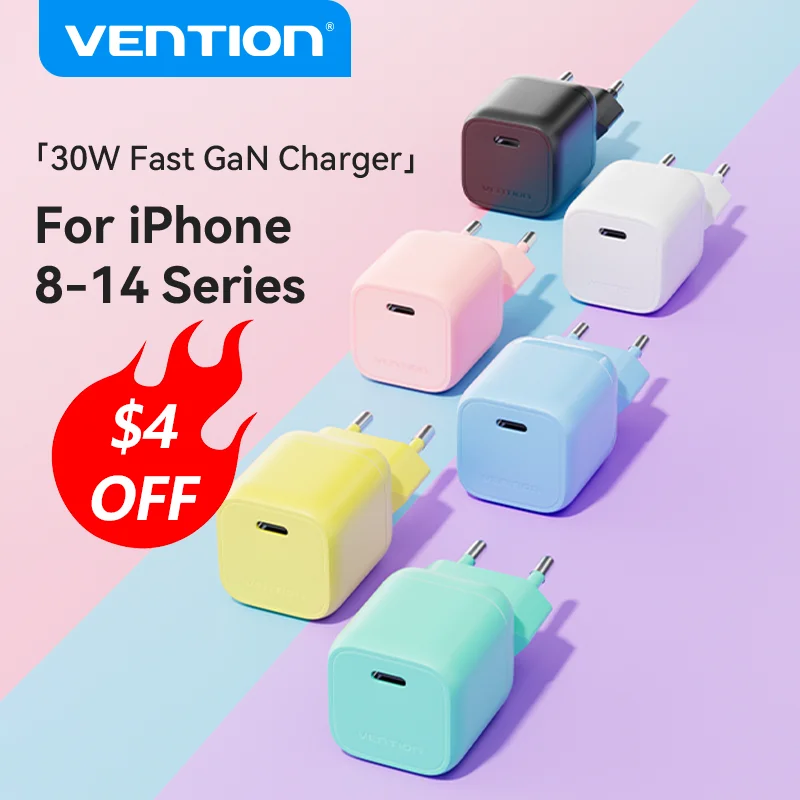 Comprar Vention-cargador GaN de 30W para iPhone 14, 13, 12 Pro Max, USB tipo C, iPad Pro, Xiaomi, Huawei, Samsung, PD
