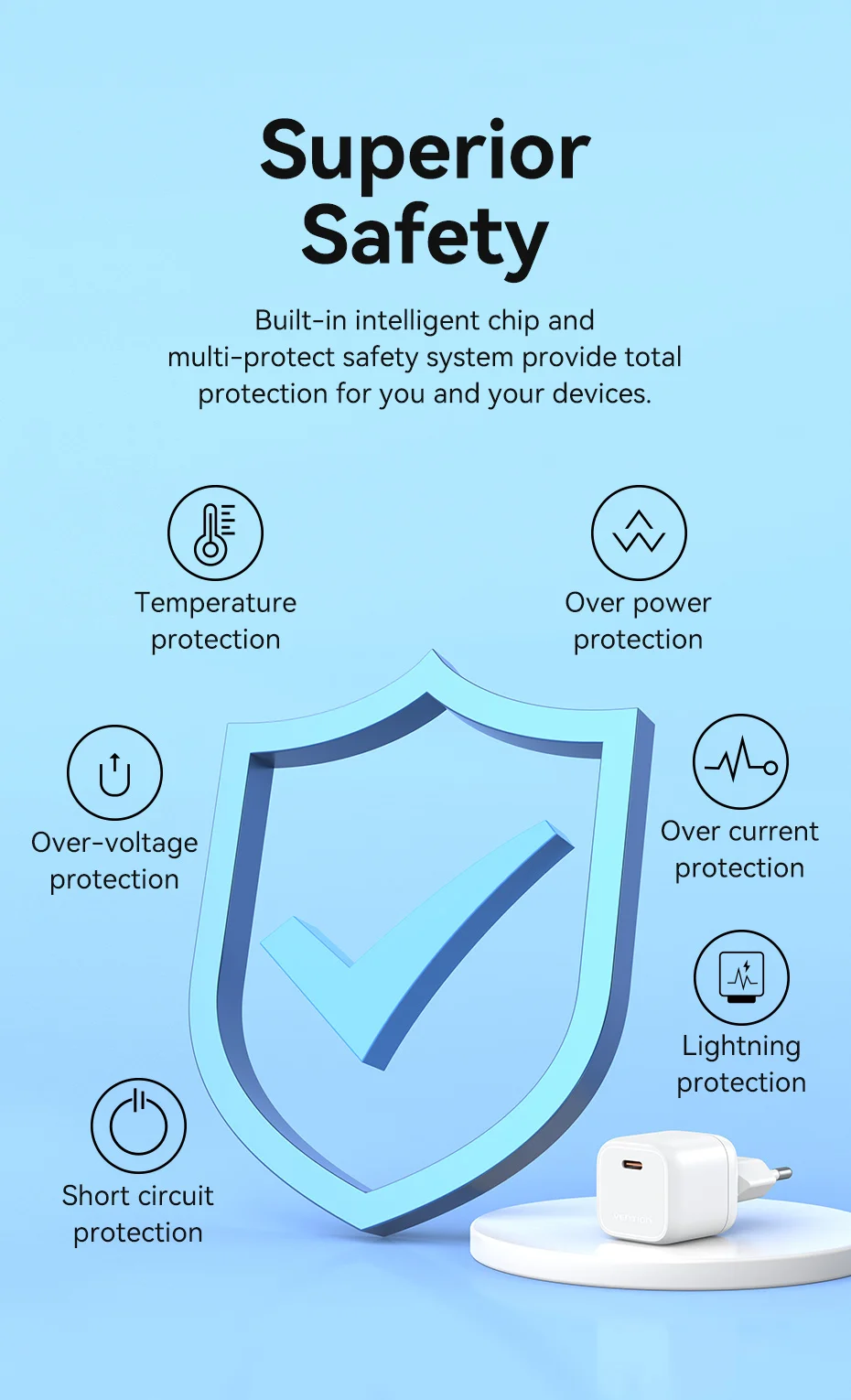 ¡Construido-en el chip inteligente y multi-proteger el sistema de seguridad proporcionan protección total para que usted y sus dispositivos!
