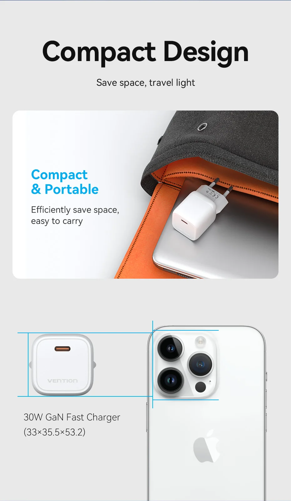 30W GaN rápido cargador tiene la potencia que necesita para cargar rápidamente su teléfono tableta Y USB-C portátil de un solo pequeño cargador Cargar los teléfonos hasta 6 × más rápido que con un original 5W cargador