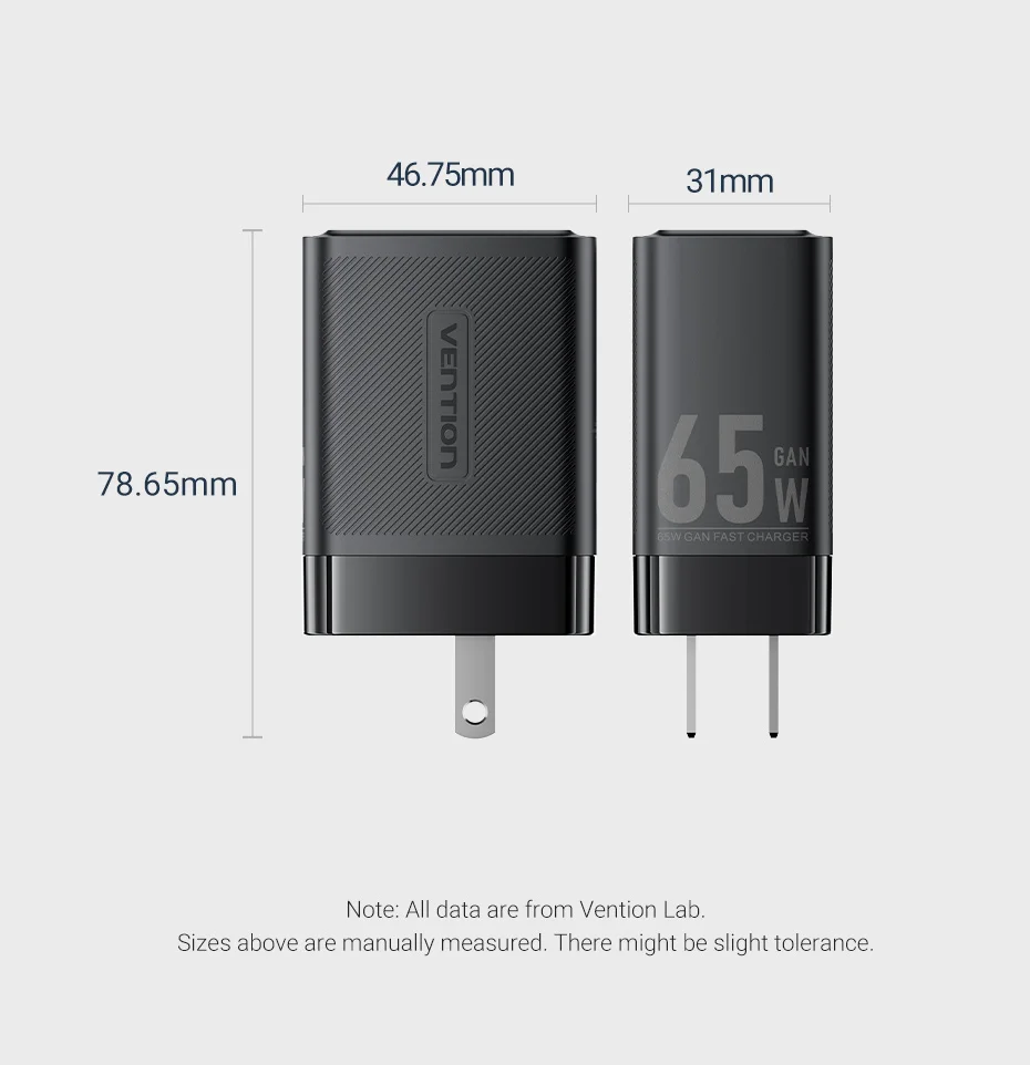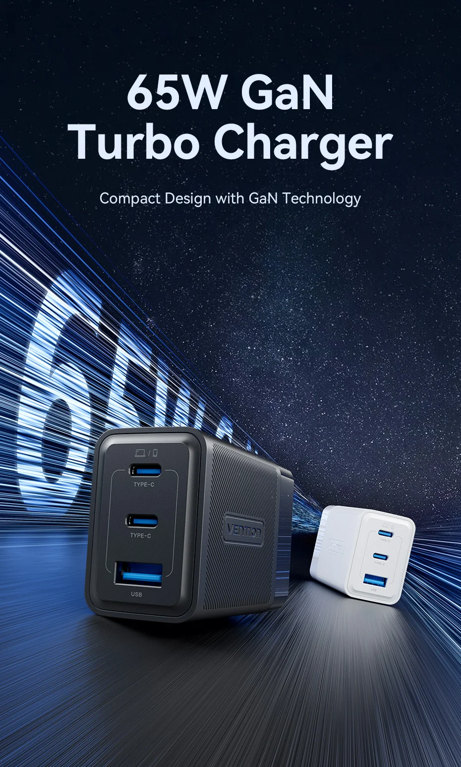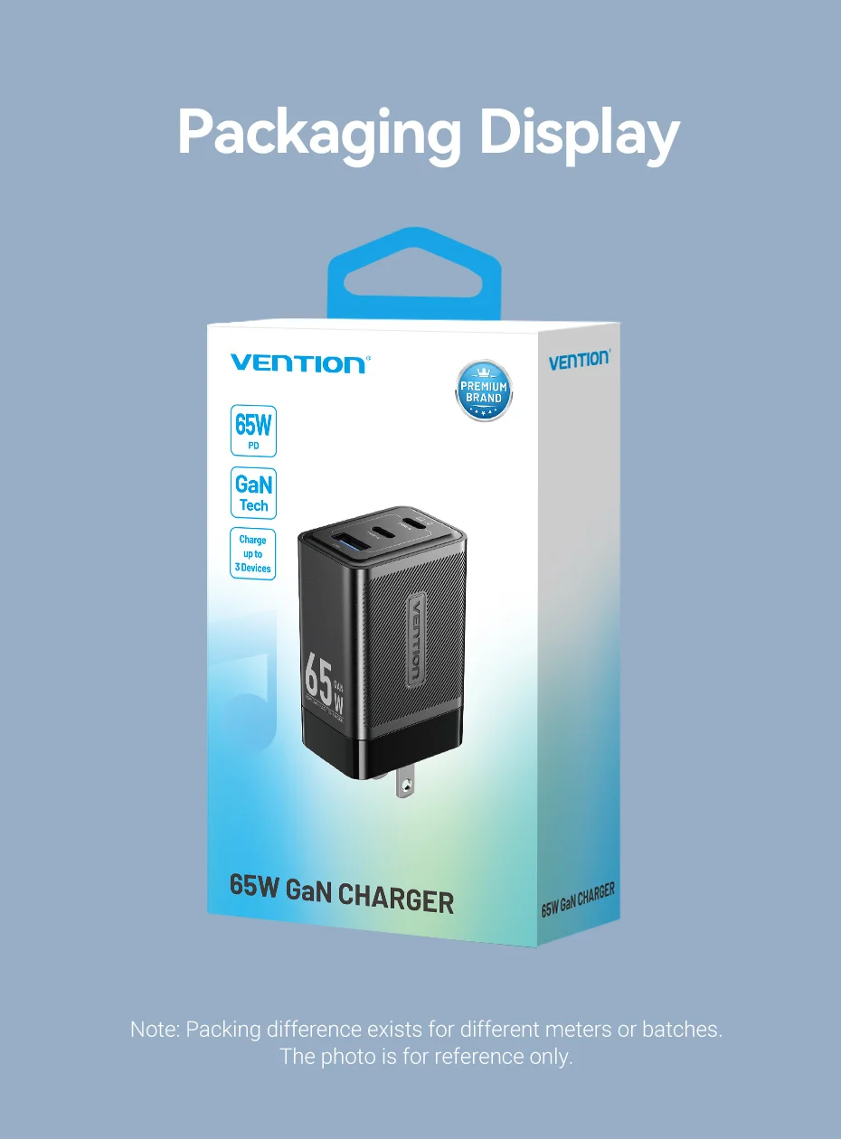 Vention-cargador GaN de 65W, dispositivo de carga rápida 4,0, 3,0 tipo C, PD, USB, portátil, QC4.0, 3,0, para ordenador portátil, iPhone 15, 14, 13, 12