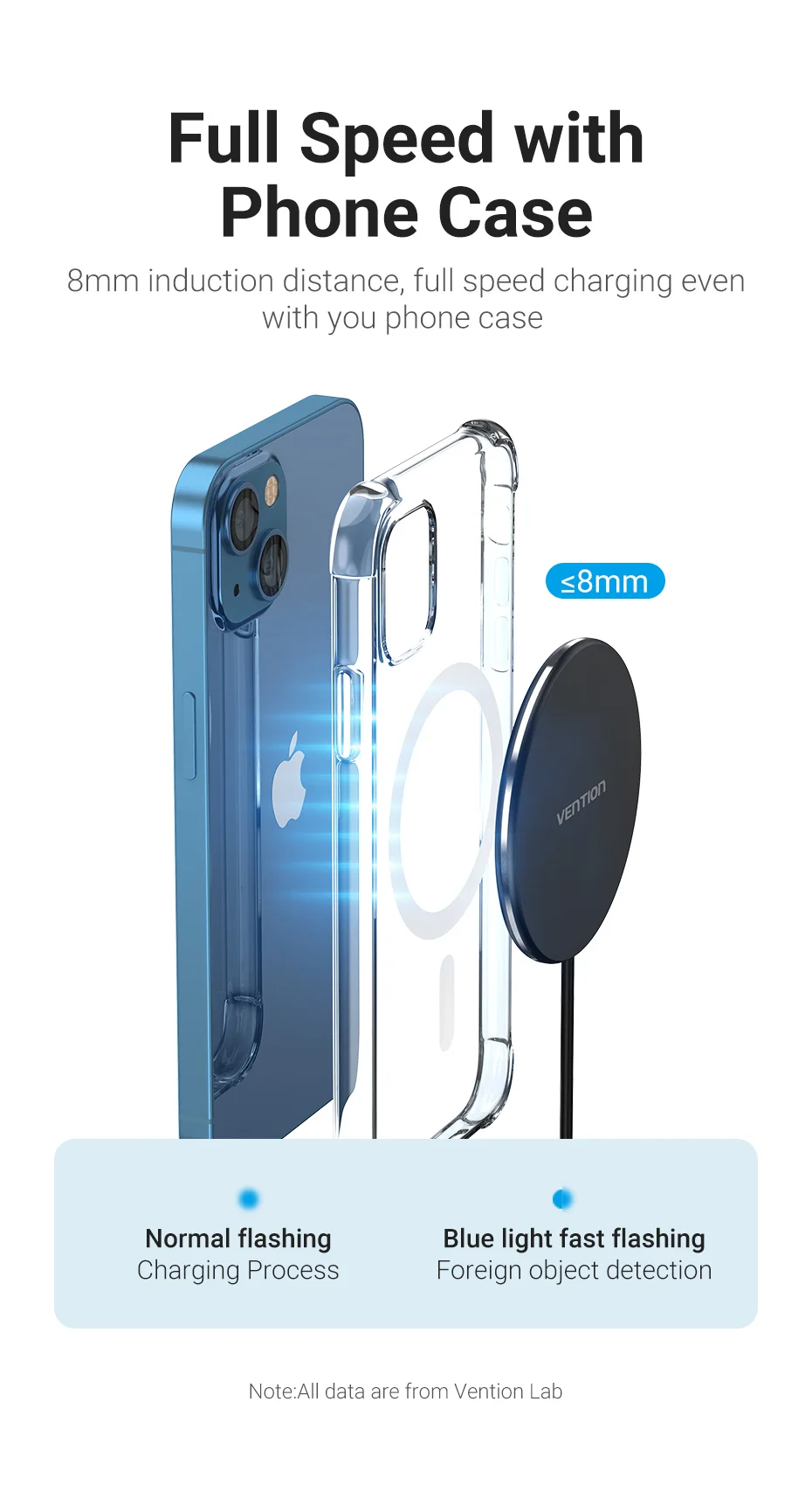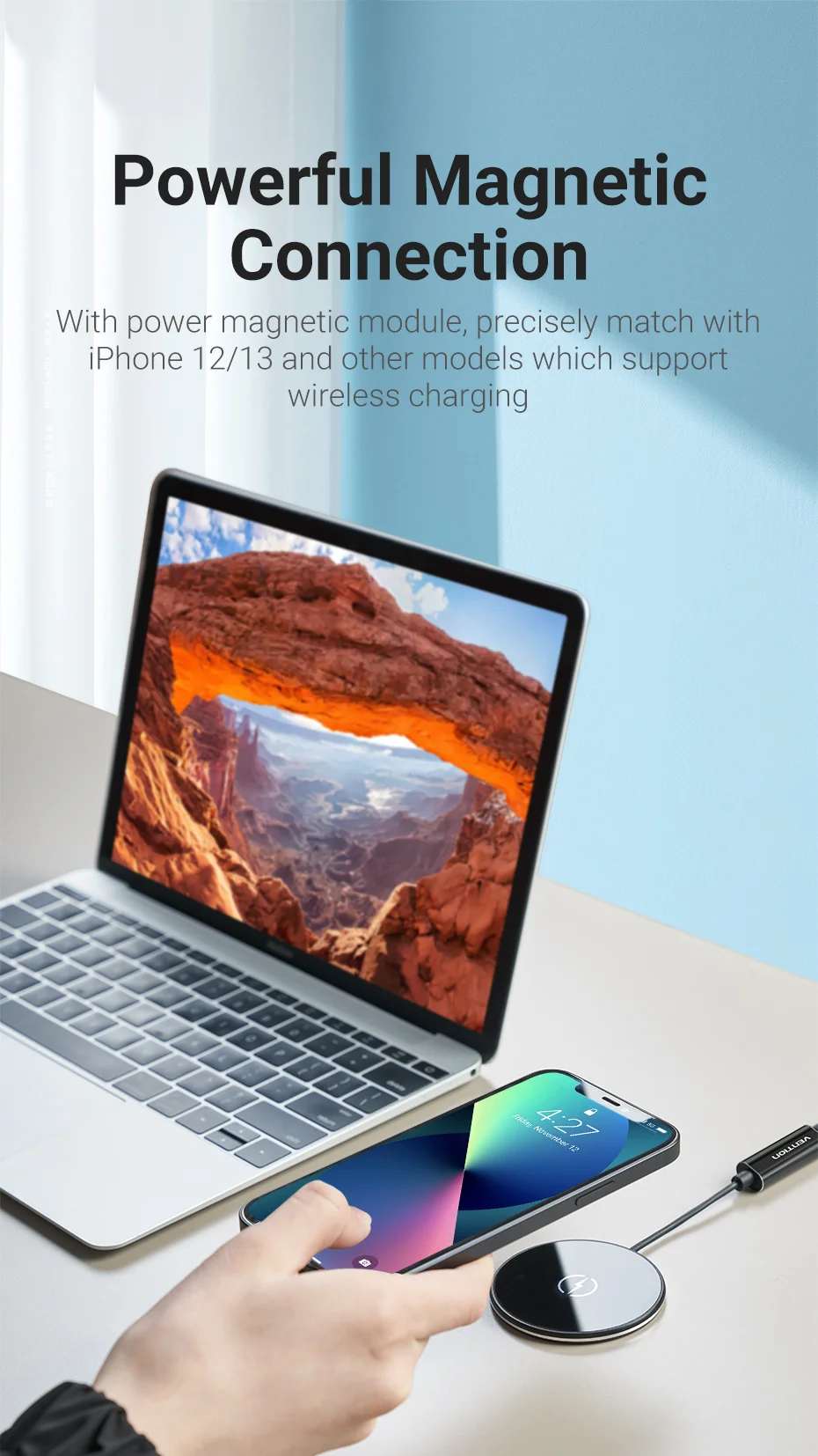 Con módulo magnético de potencia, combina con precisión con iPhone 12 / 13 y otros modelos que admiten carga inalámbrica