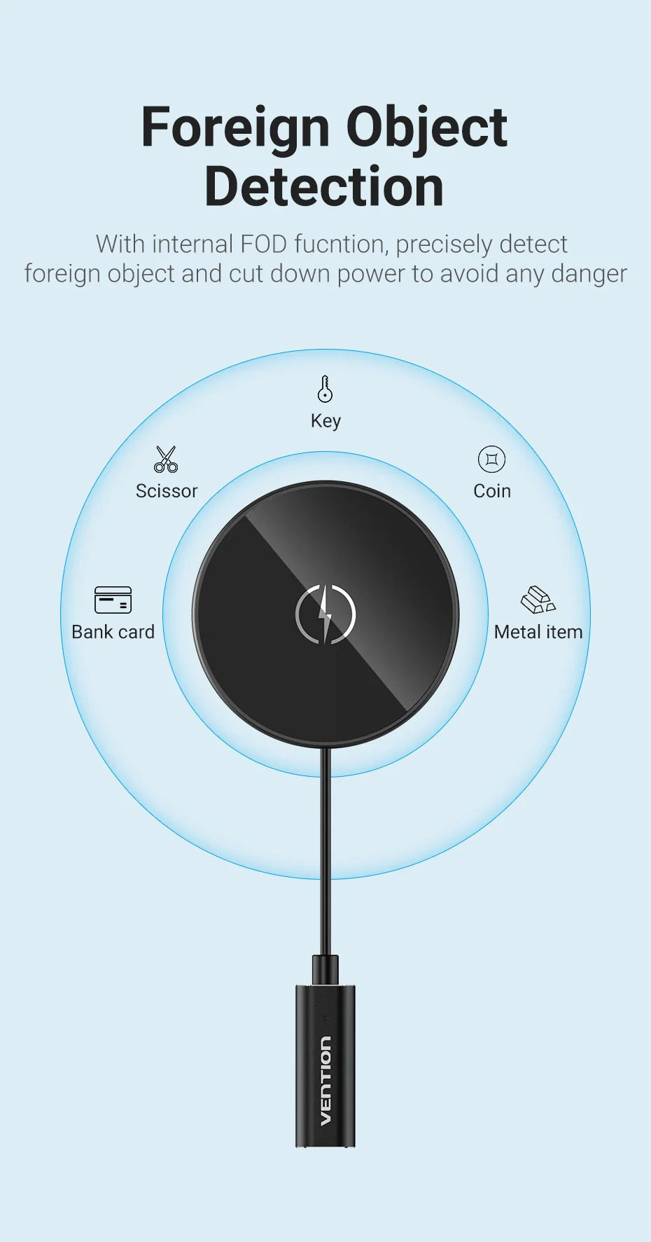 Con función interna de FOD, detecta con precisión objetos extraños y corta la potencia para evitar cualquier peligro