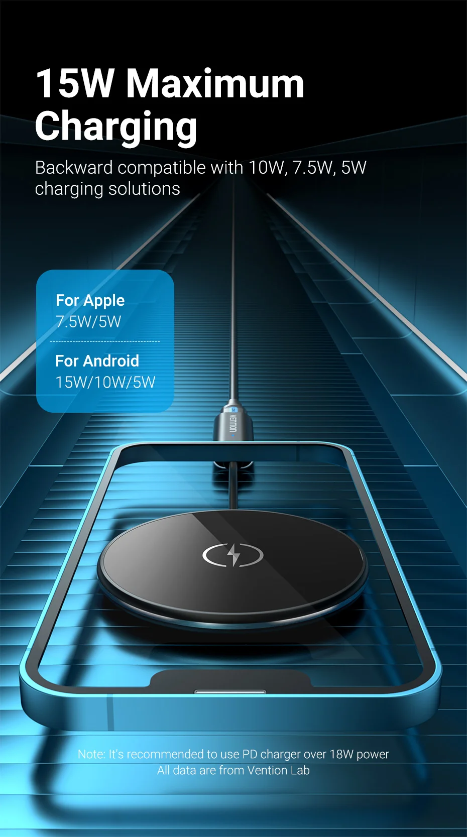 Distancia de inducción de 8mm, carga de velocidad completa incluso con la funda del teléfono