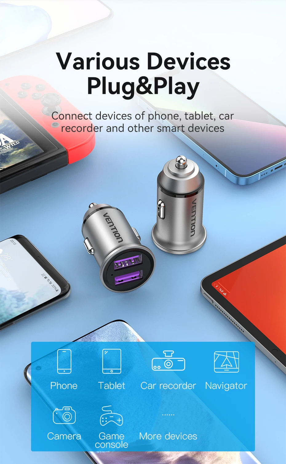 Conectar dispositivos de teléfono tableta, grabadora de coche y otros dispositivos inteligentes