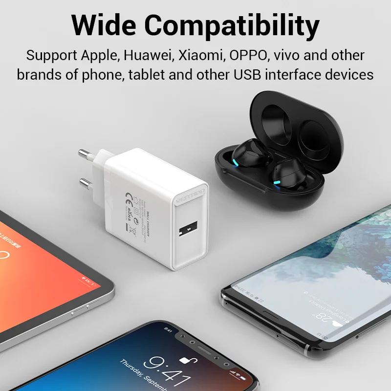Comprar Vention-cargador USB de pared para teléfono móvil, adaptador de la UE para iPhone X, 8, 7, iPad, Samsung S9, S8, Xiaomi Mi8, 5V, 2.4A