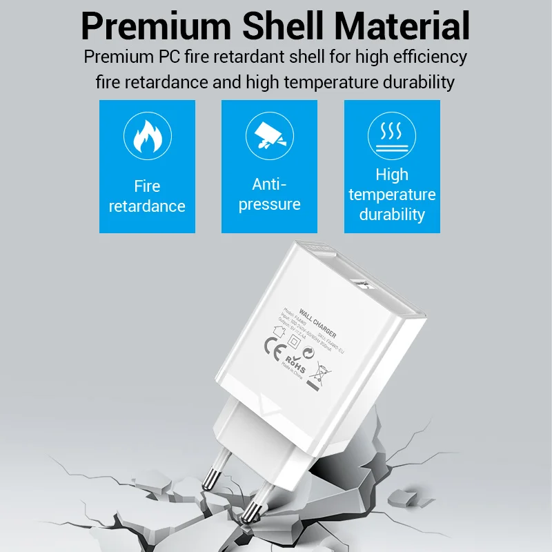 Seguridad garantizada: Cargador de pared USB con carcasa a prueba de fuego de primera calidad y sobrecarga, sobrecorriente y sobrecalentamiento. La carga se detiene cuando la batería está llena