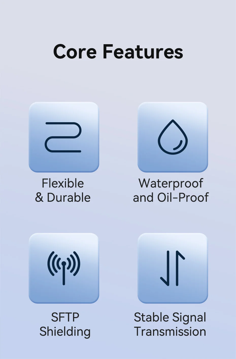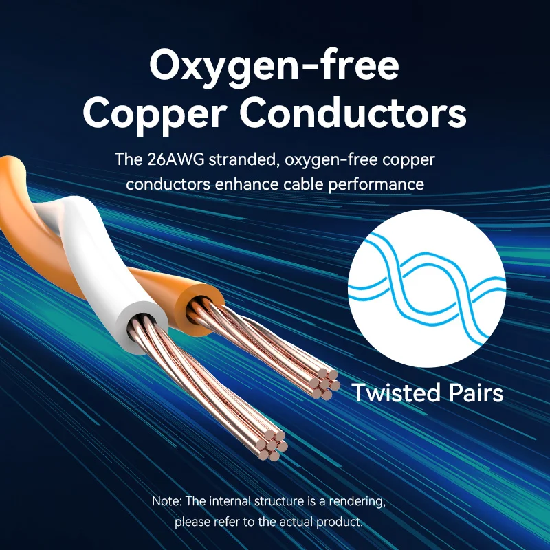 Los conductores de cobre sin oxígeno y el diseño de doble blindaje de papel de aluminio + metal trenzado protegen eficazmente contra las interferencias EMI y garantizan una transmisión de señal más estable.