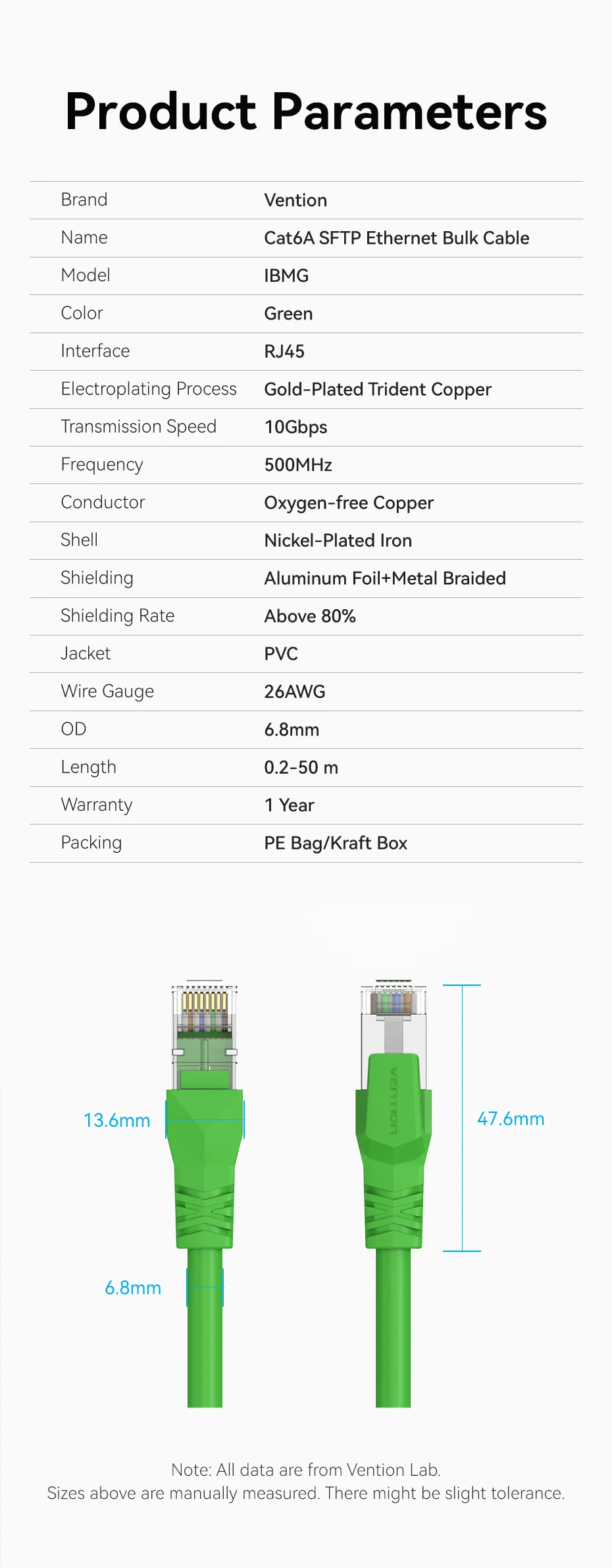 Comprar Vention Cat6A Cable Ethernet a granel 10Gbps SFTP Cat 6A Cable de conexión para servomotor ADSL PLC Ethernet Swicth PC Cable de red RJ45