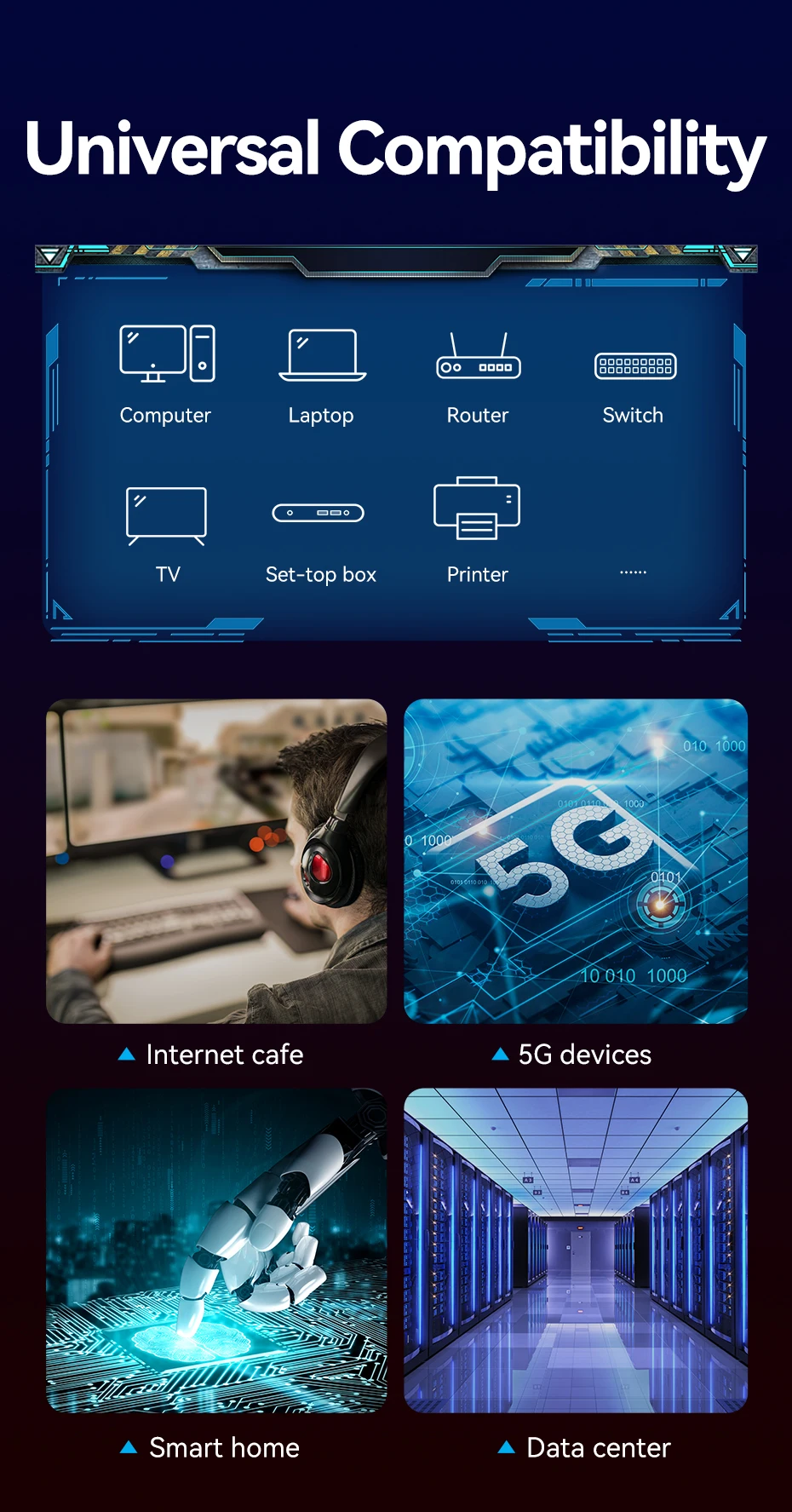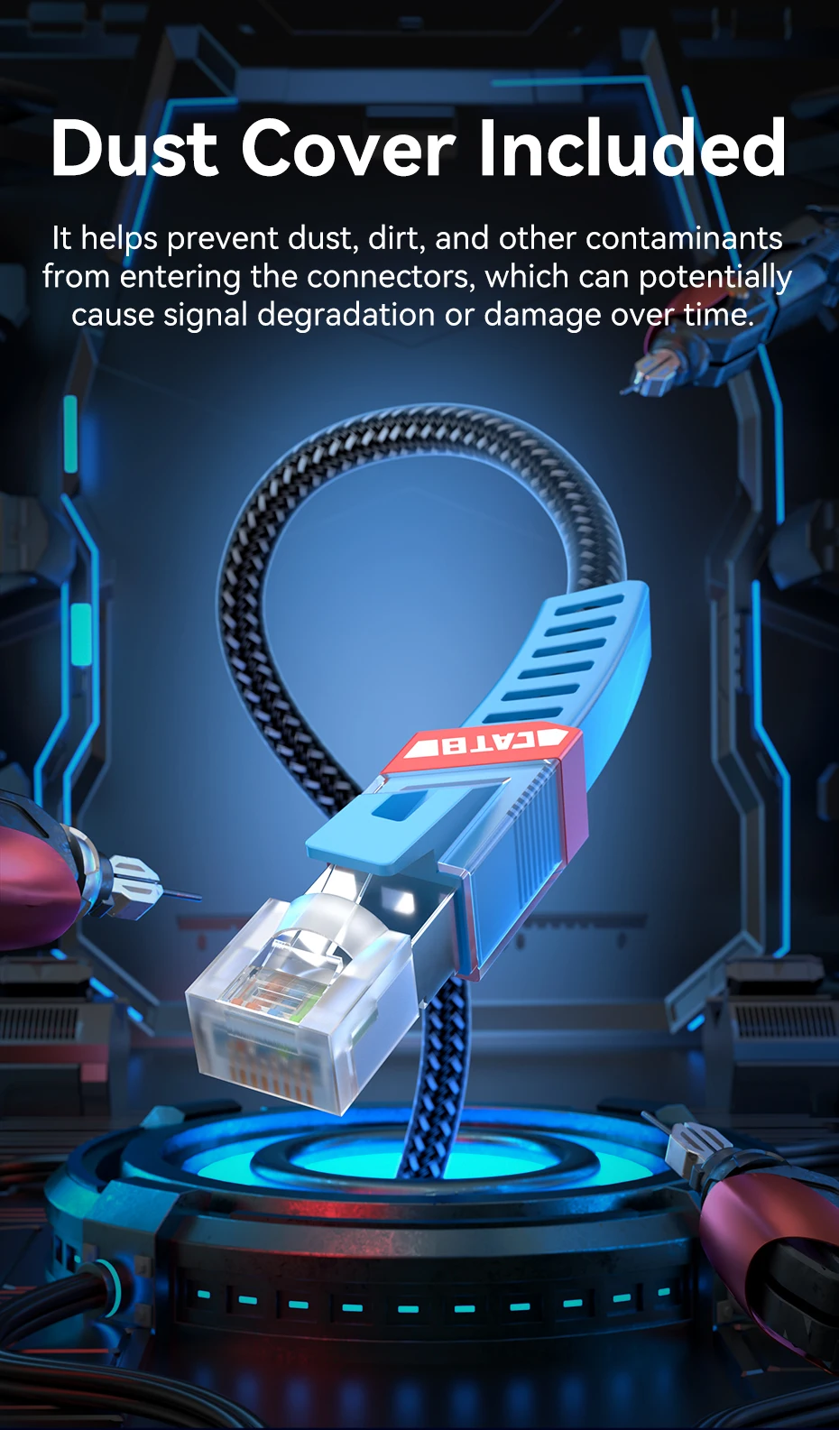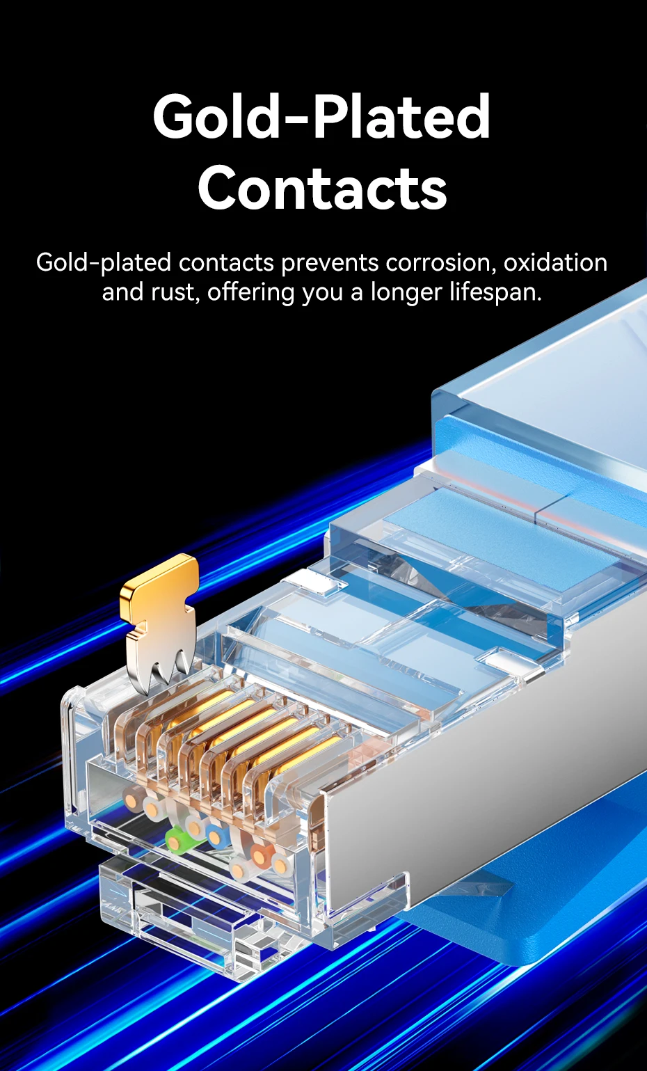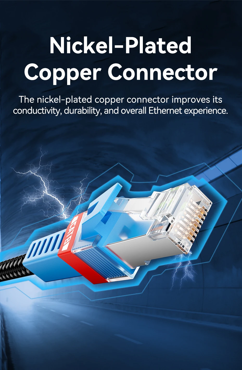 El conector de cobre niquelado mejora su conductividad, durabilidad y experiencia general de Ethernet.