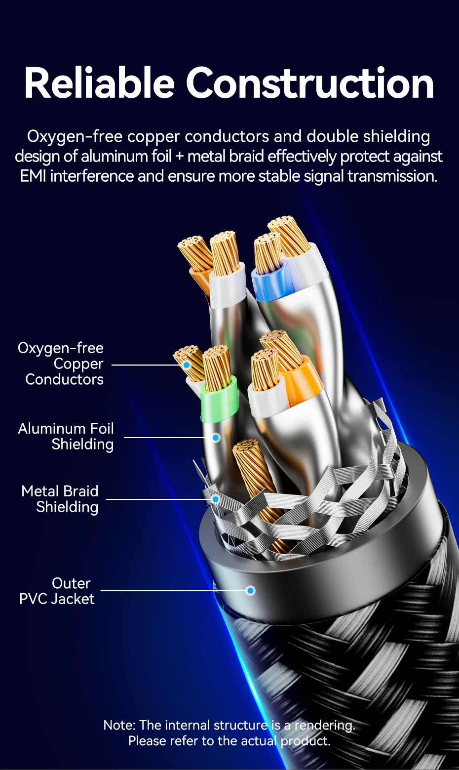 Los conductores de cobre sin oxígeno y el diseño de doble blindaje de papel de aluminio + trenza de metal protegen eficazmente contra las interferencias EMI y garantizan una transmisión de señal más estable.