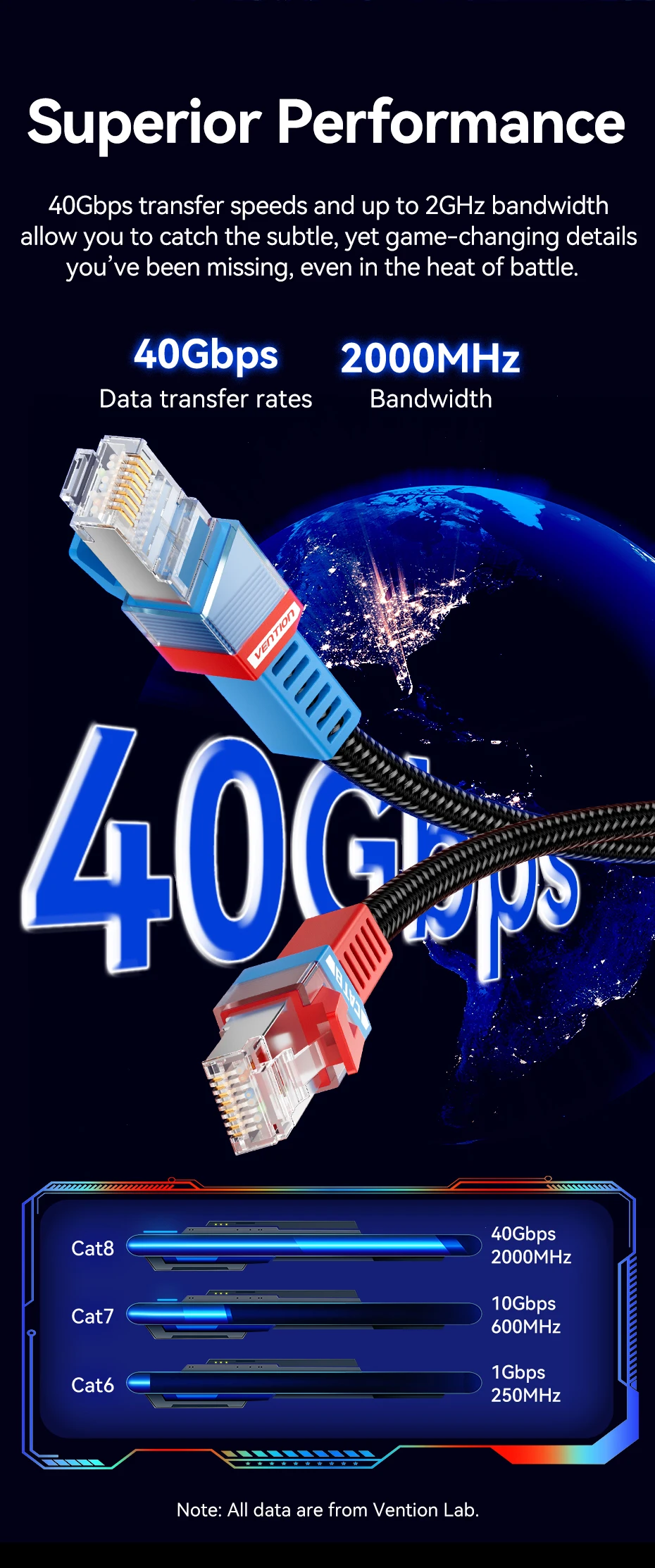 Comprar Vention CAT8 Cable de juego Ethernet 40Gbps 2000MHz CAT 8 red de algodón trenzado Internet Lan Cable para PC PS4 módem enrutador RJ45