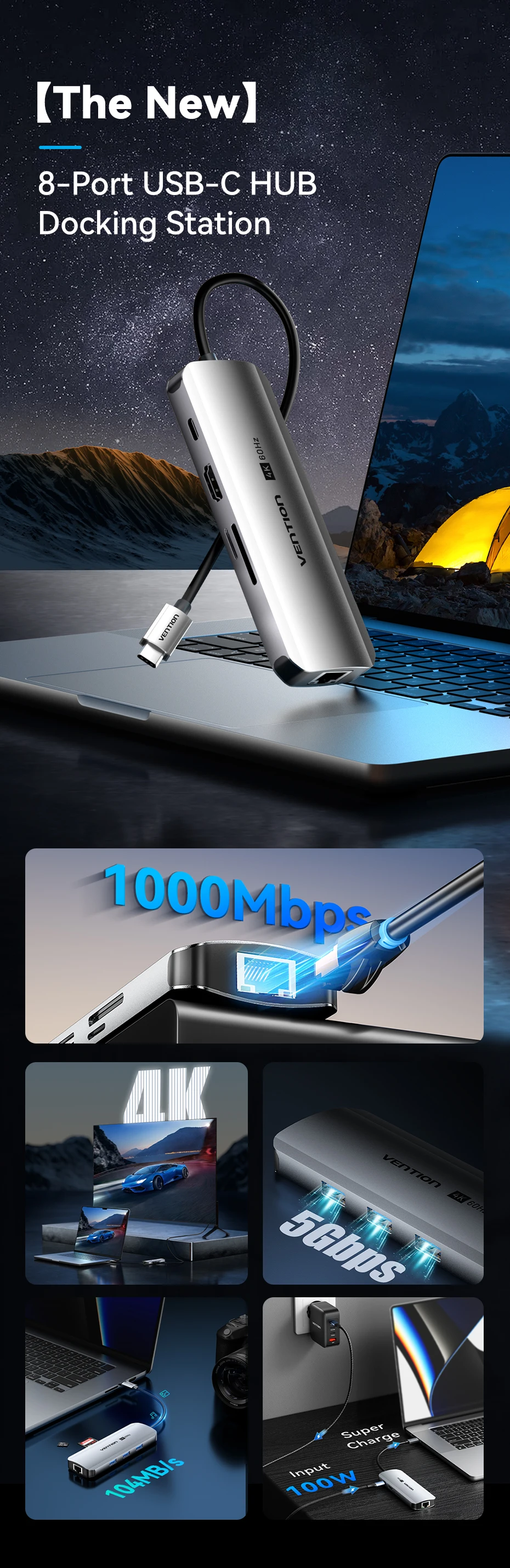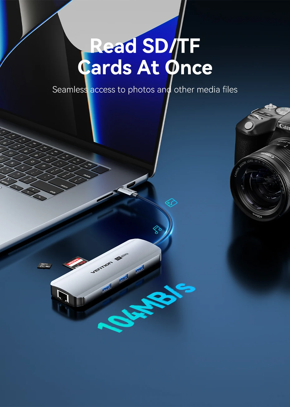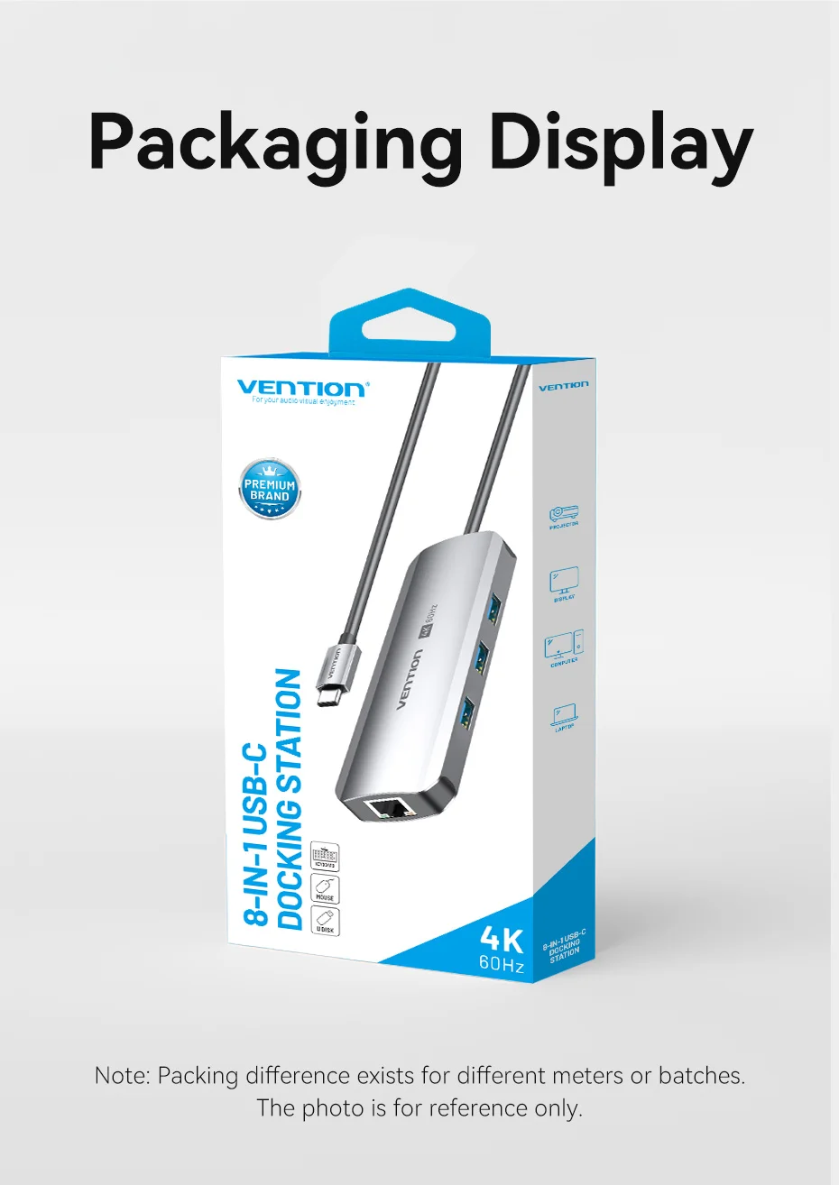 Comprar Vention-concentrador de red USB tipo C a HDMI4K60Hz RJ45, Puerto adaptador, estación de acoplamiento PD100W para Macbook Air M2 M1, accesorios para PC, concentrador USB 3,0
