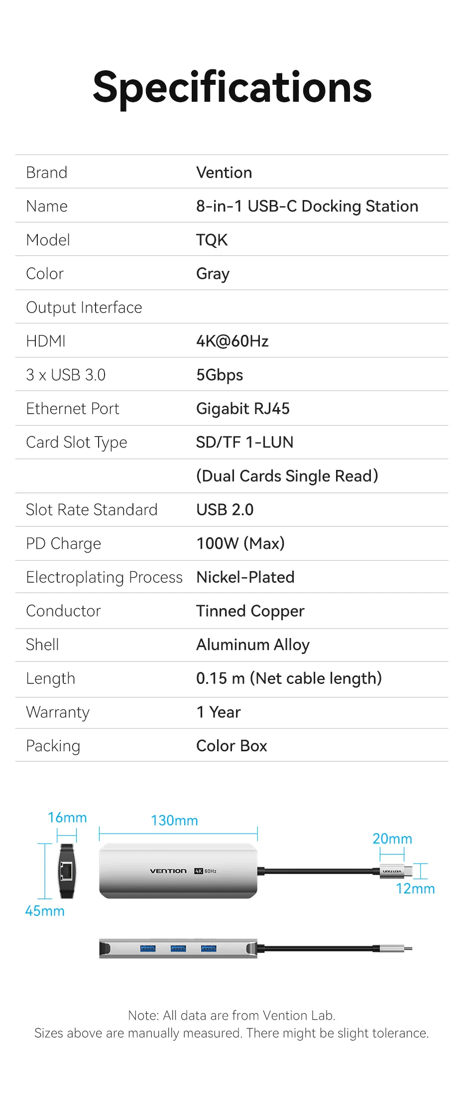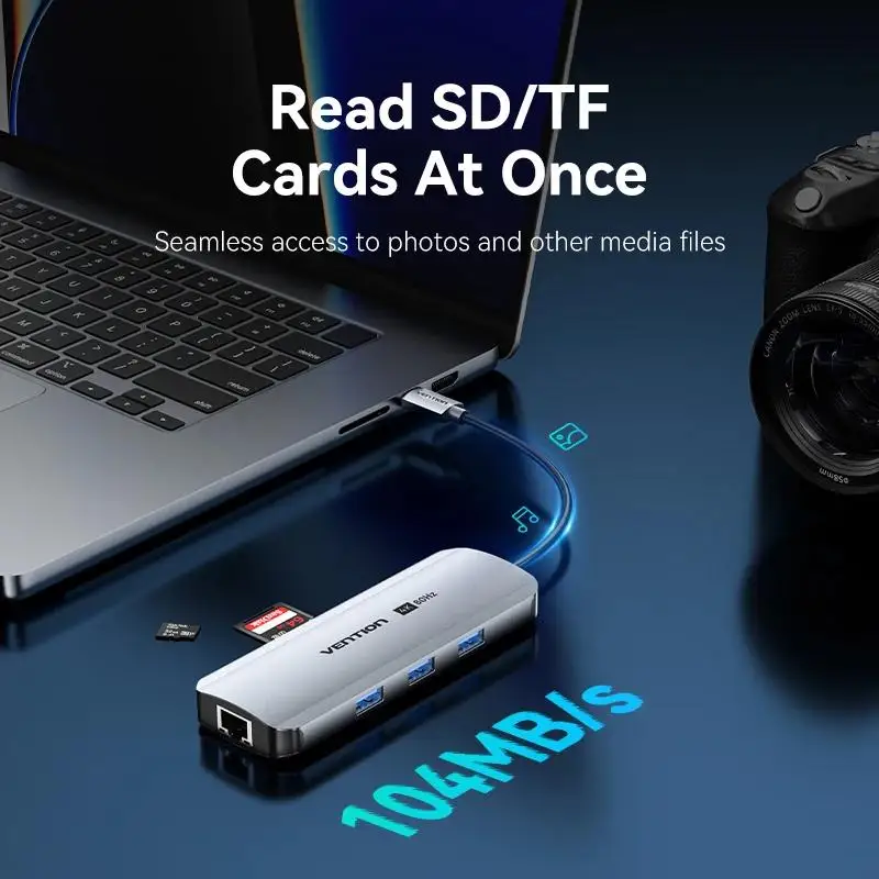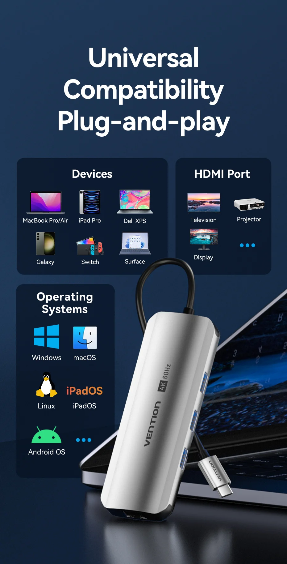 Comprar Vention-concentrador de red USB tipo C a HDMI4K60Hz RJ45, Puerto adaptador, estación de acoplamiento PD100W para Macbook Air M2 M1, accesorios para PC, concentrador USB 3,0