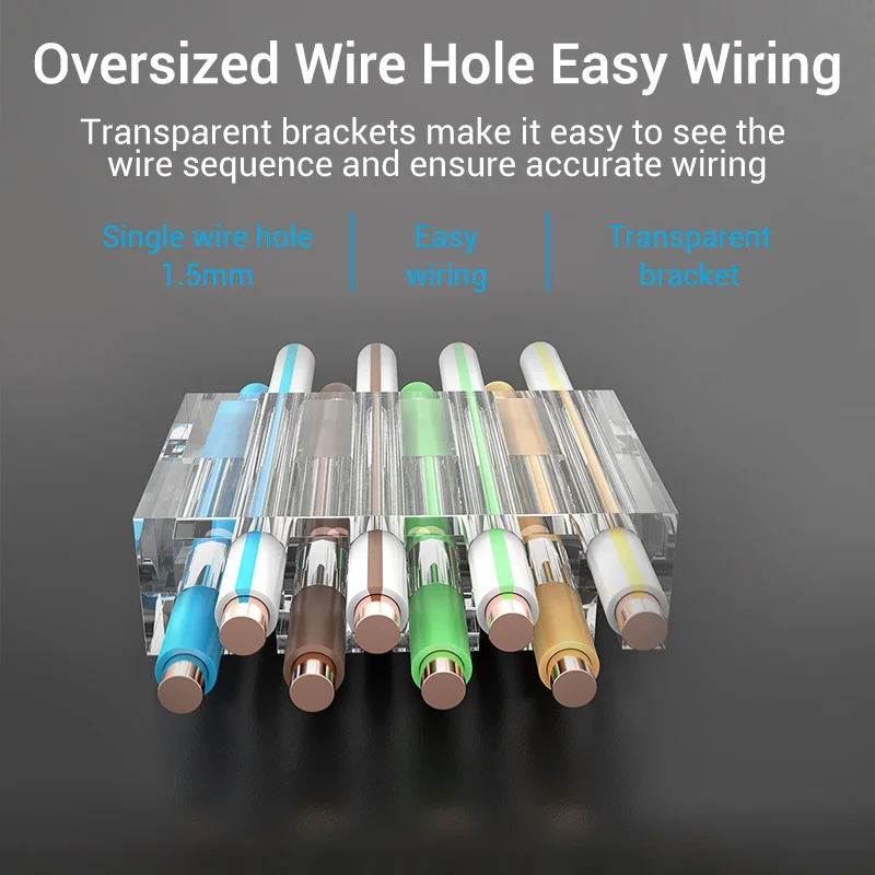Transparent brackets make it easy to see the wire sequence and ensure accurate wiring