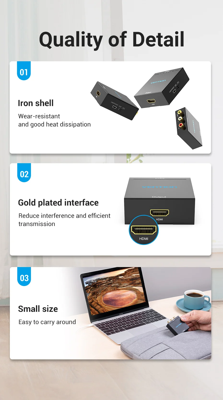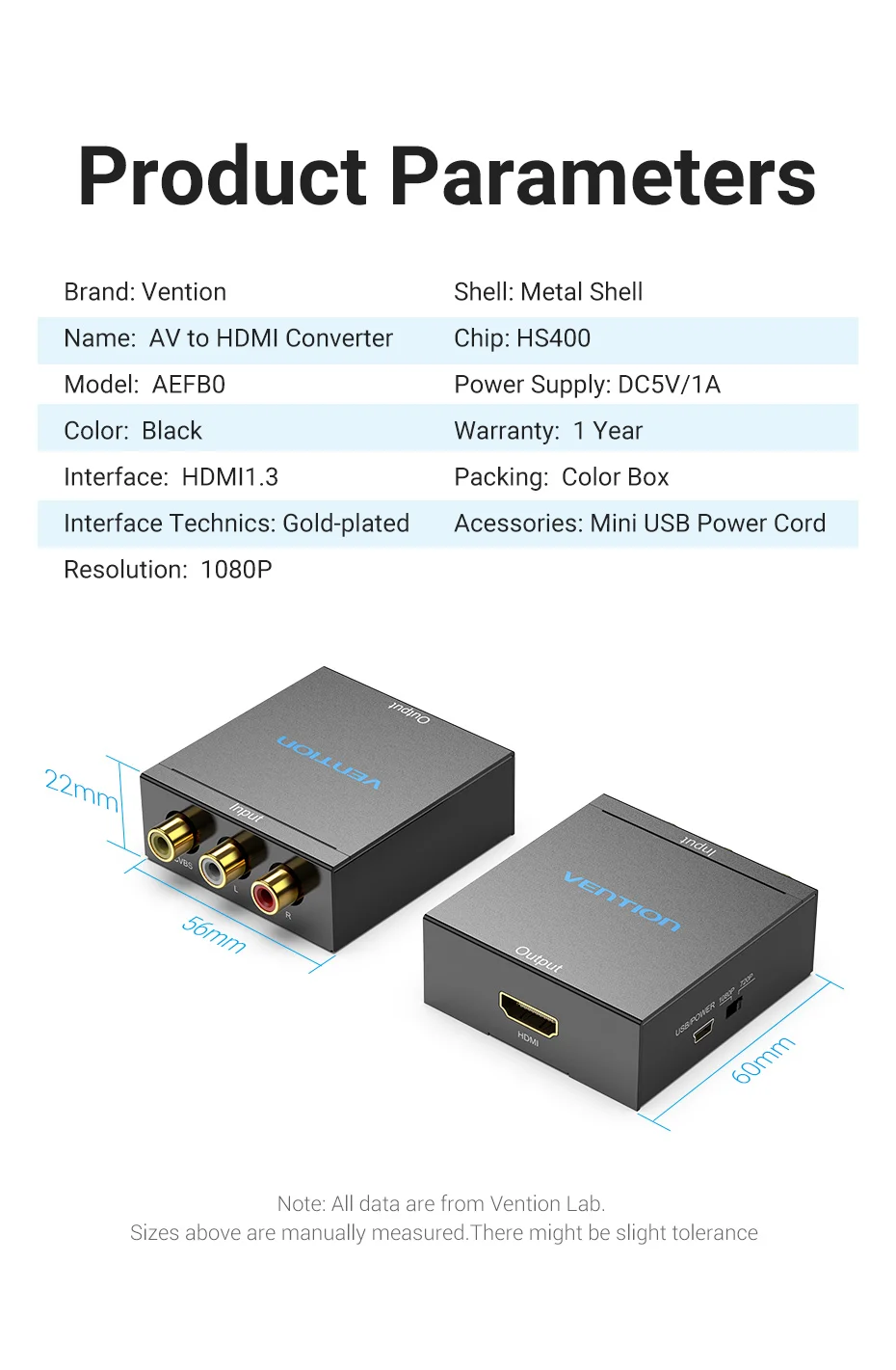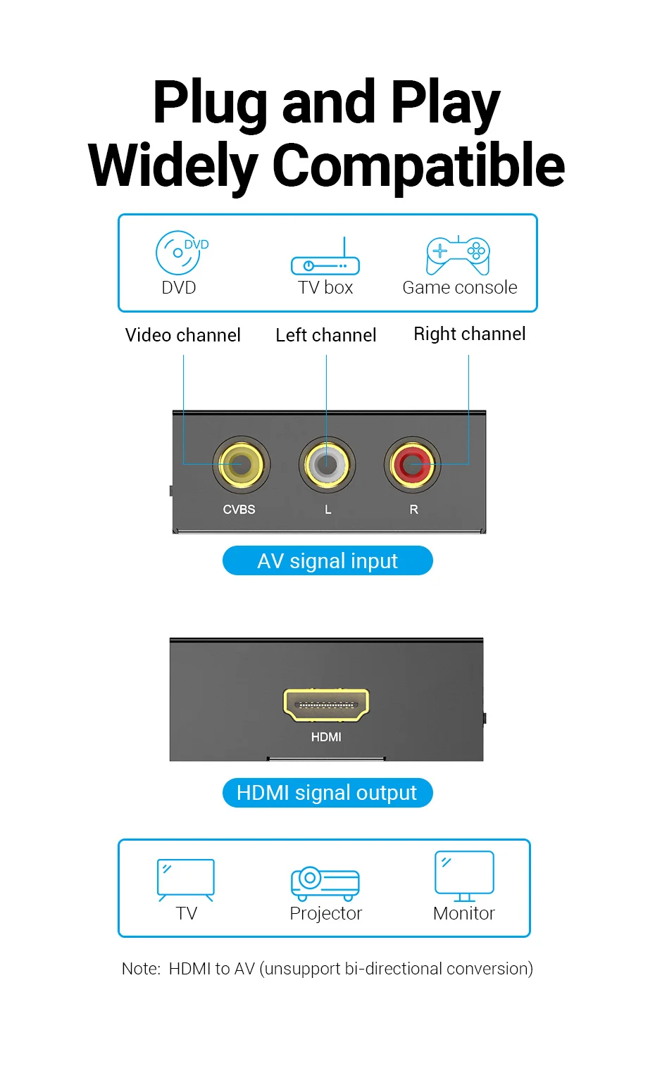 Comprar Vention-Convertidor de AV a HDMI a RCA, adaptador de vídeo con Mini Cable de alimentación USB para TV, proyector, consola de juegos, HDMI a AV