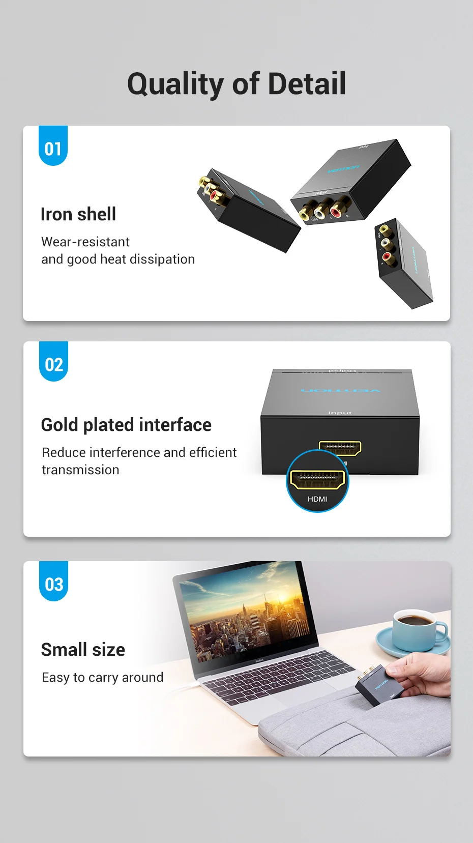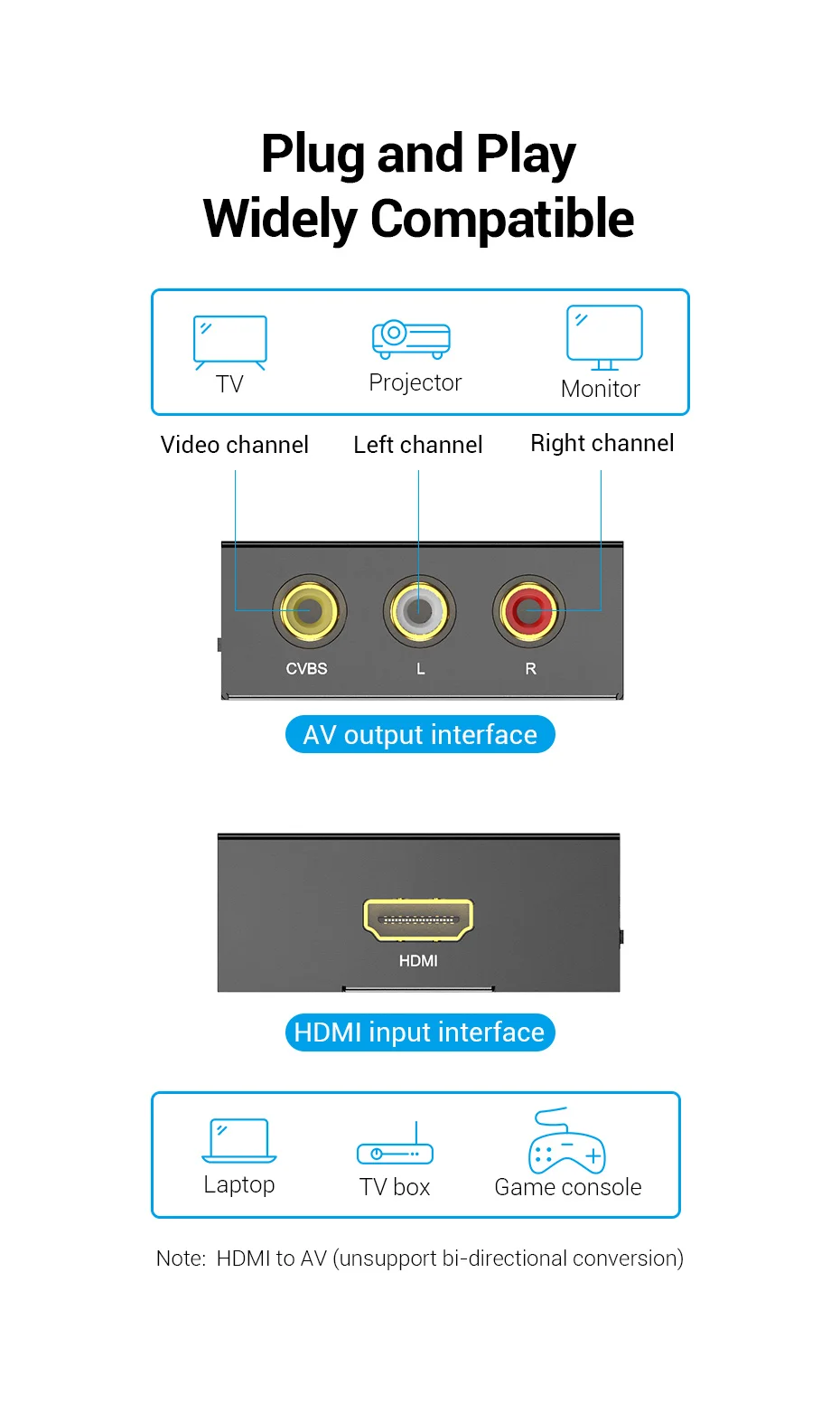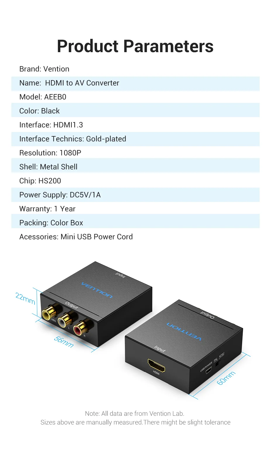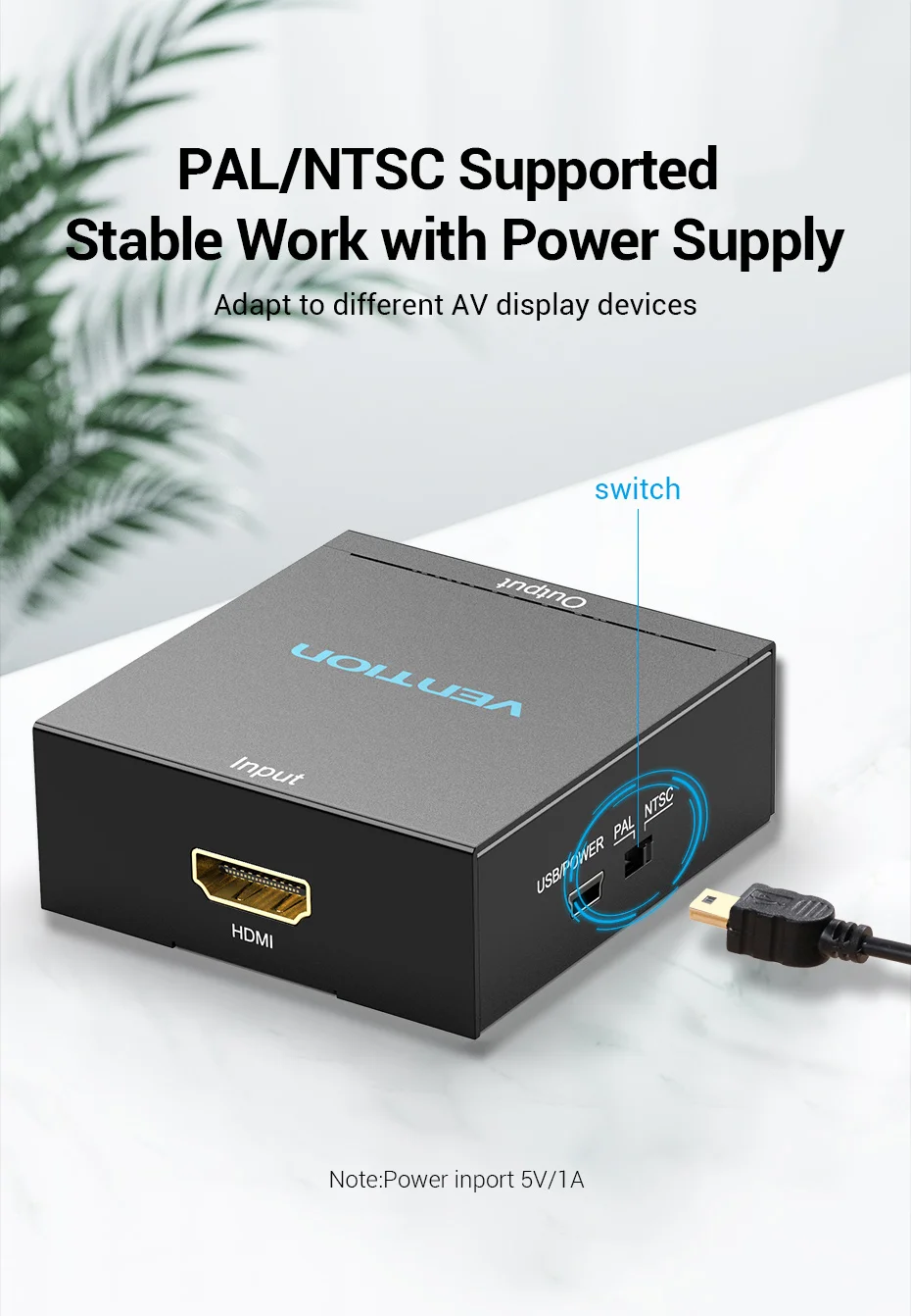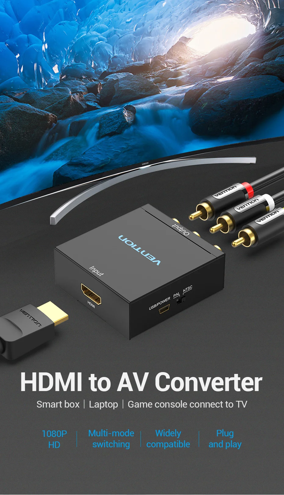 Comprar Vention-convertidor HDMI a AV, adaptador de vídeo 1080P, interruptor HDMI con Mini Cable de alimentación USB para TV Box, AV, CVBS, L/R