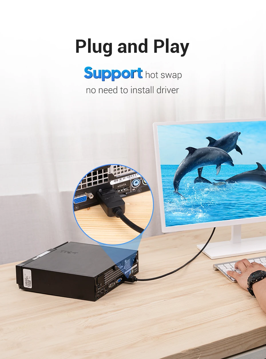 Computadora portátil DP a monitor DVPlug and PlayAdmite intercambio en calienteno es necesario instalar el controlador