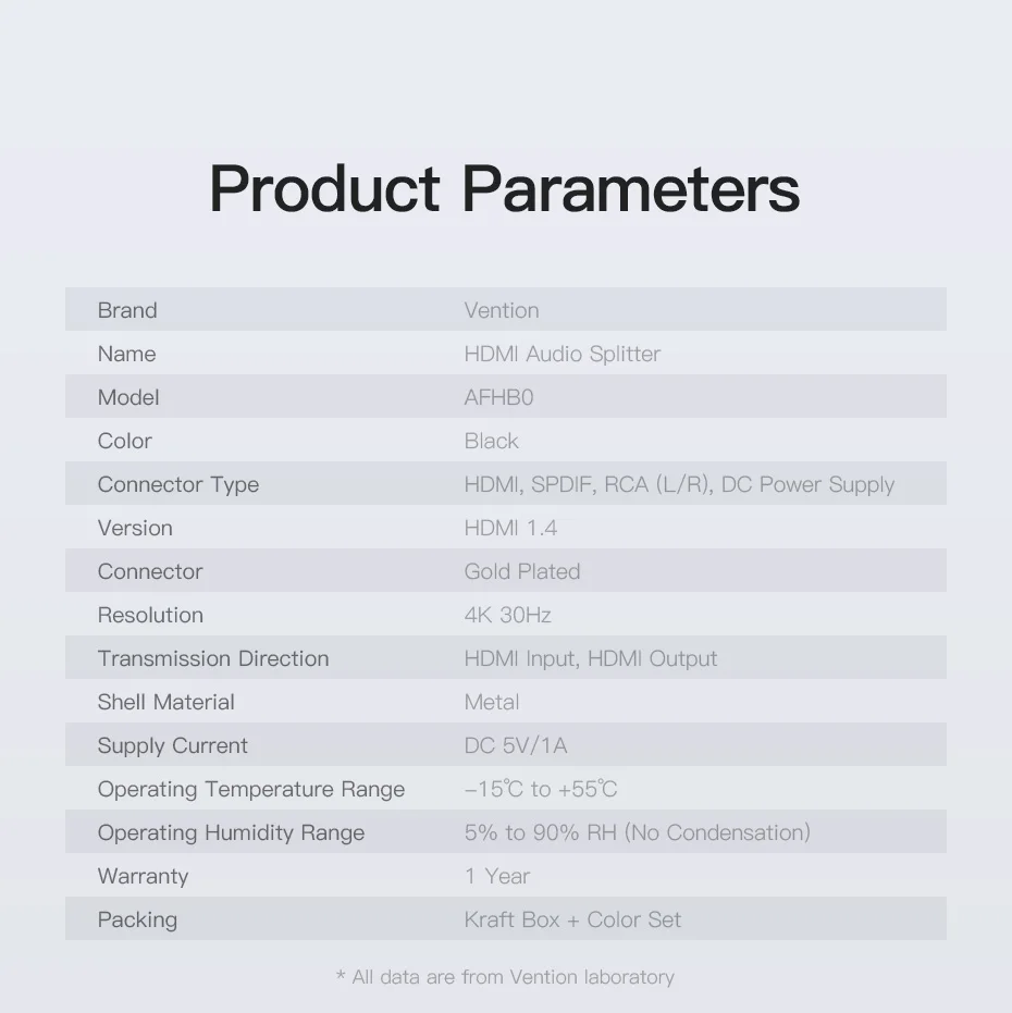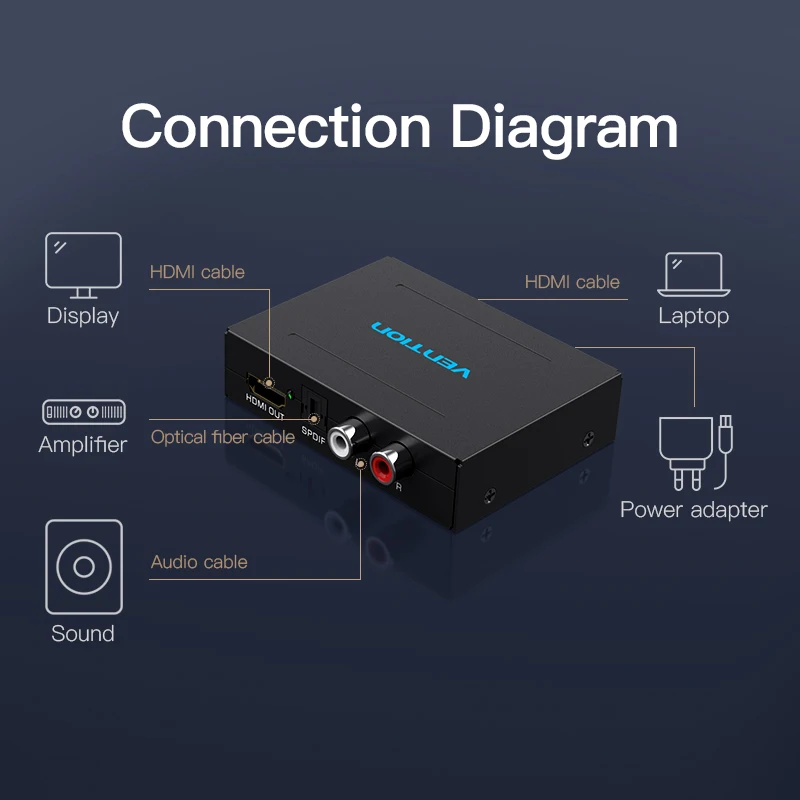 Comprar Vention-Divisor de Audio HDMI 4k a HDMI/óptico TOSLINK SPDIF/RCA, convertidor Extractor de Audio para proyector, TV, PS4, Displayer