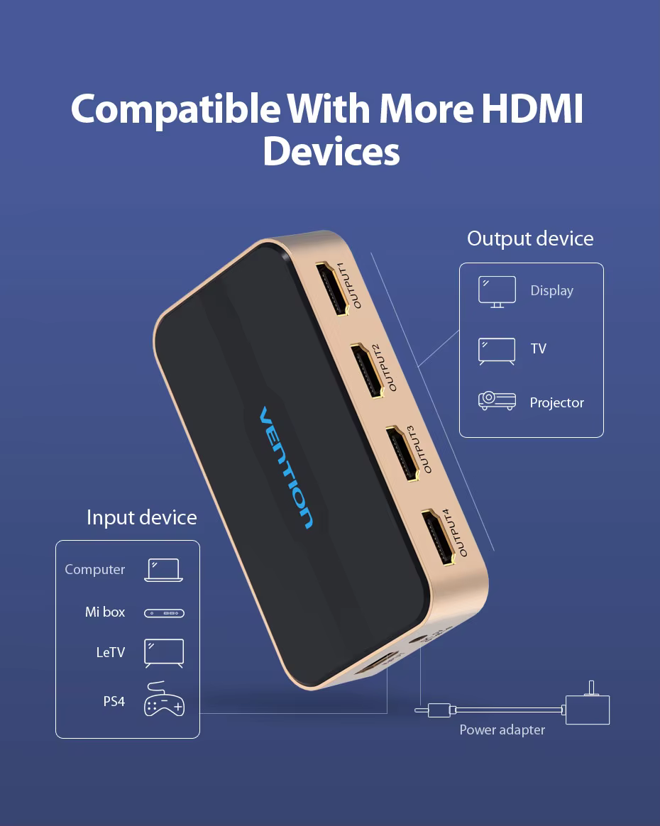 Comprar Vention-Divisor HDMI 1 In 4 Out HD 4K/30Hz HDMI Switch HDMI 1,4 1x2 1x4 adaptador con fuente de alimentación para Xbox PS4 TV HDMI Switcher