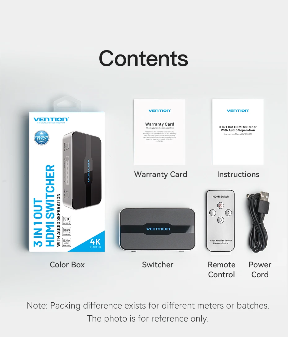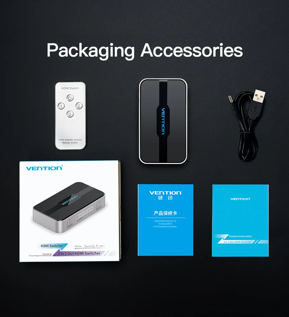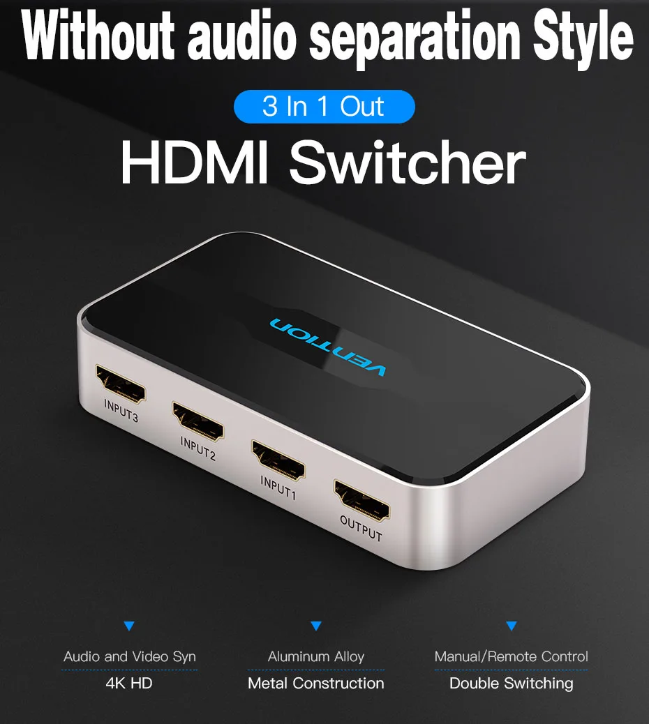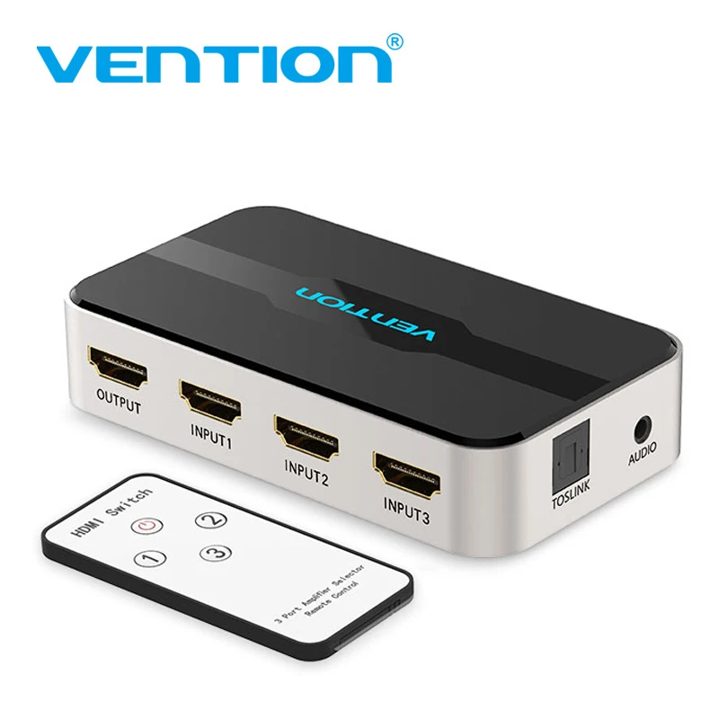 Comprar Vention-Divisor HDMI con 3 entradas, 1 salida, 4K, 3 puertos, Swtich, Audio Toslink, 3D, 2160P, para Xbox 360, PS4, Smart TV
