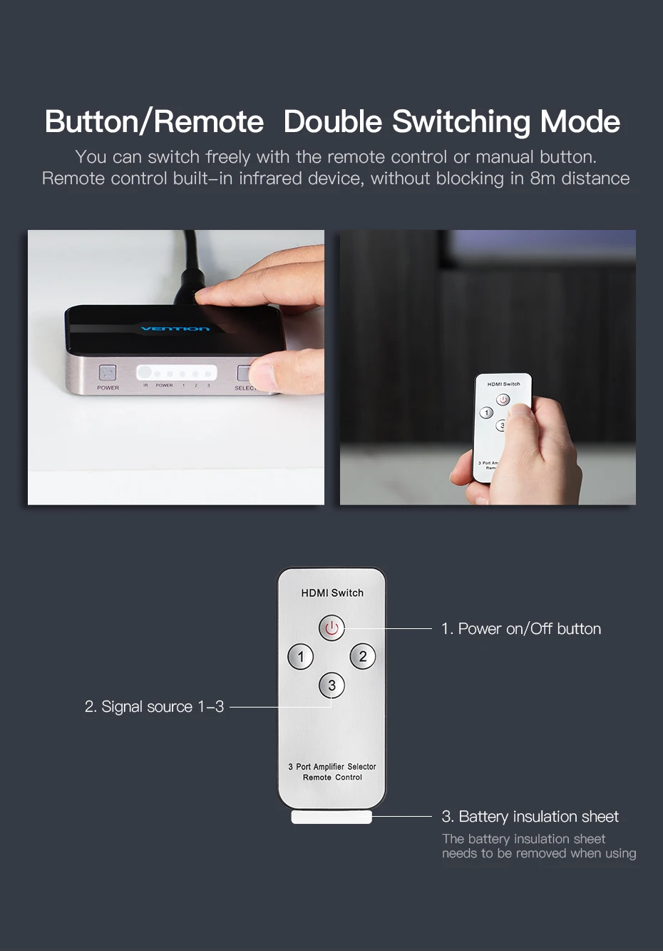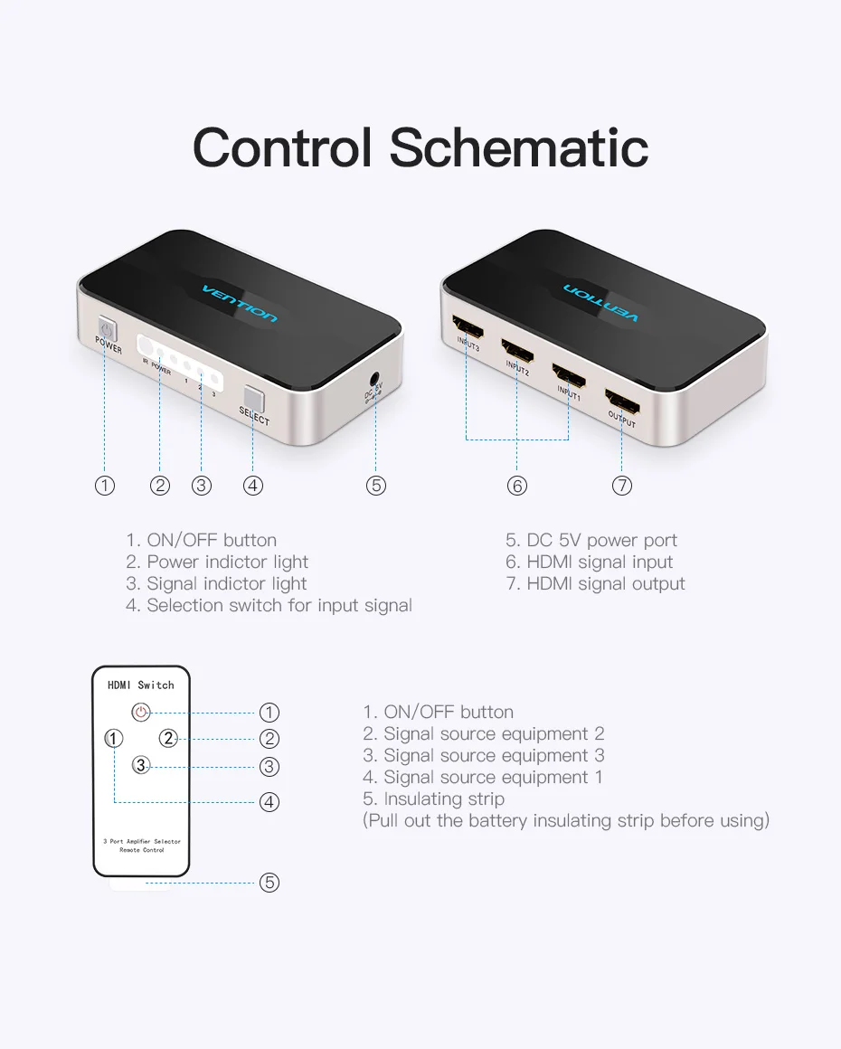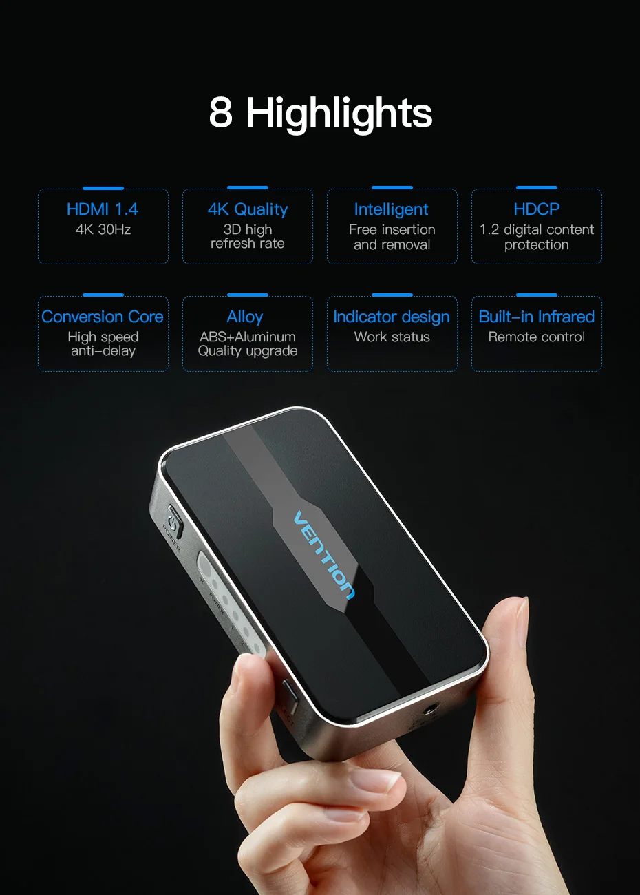 Comprar Vention-Divisor HDMI con 3 entradas, 1 salida, 4K, 3 puertos, Swtich, Audio Toslink, 3D, 2160P, para Xbox 360, PS4, Smart TV