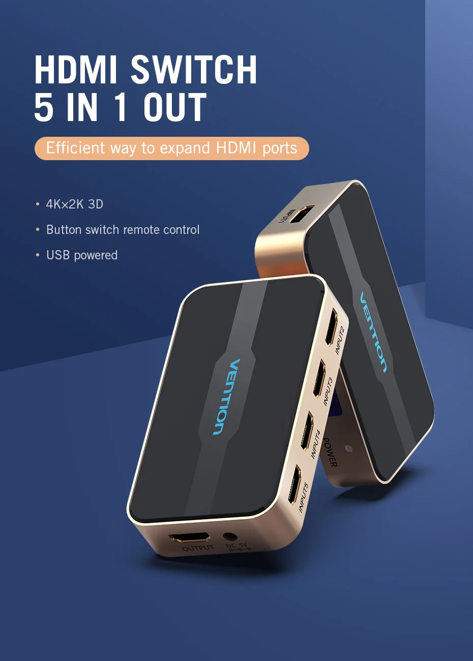 Comprar Vention-Divisor HDMI 5 en 1, salida 4K/30Hz, 5x1, 3x1, adaptador para XBOX 360, TV, Mi Box, Switch, PS5, PS4, 3 en 1, salida HDMI 2,0
