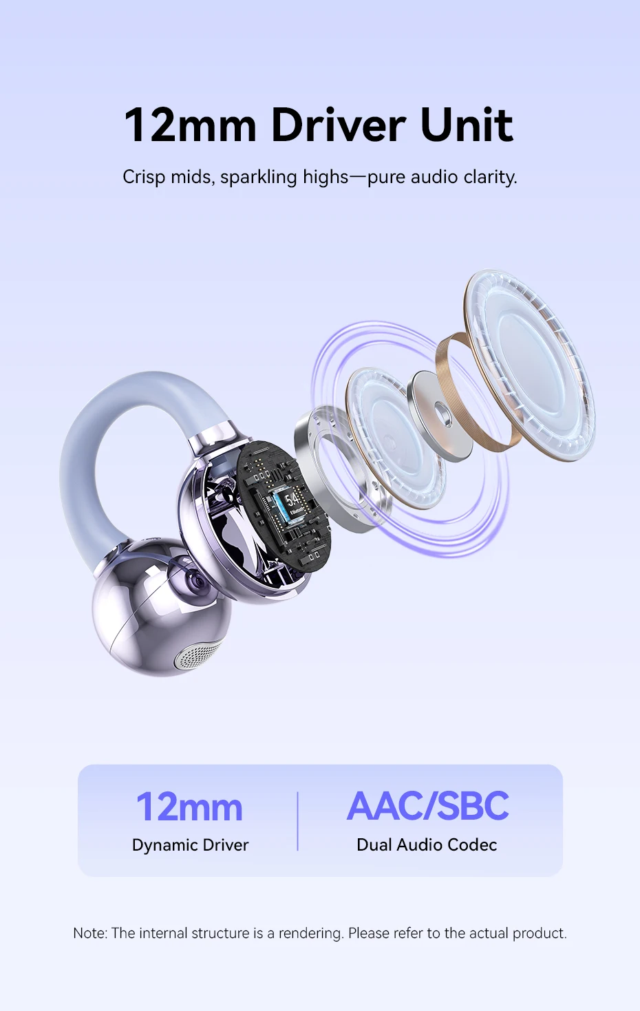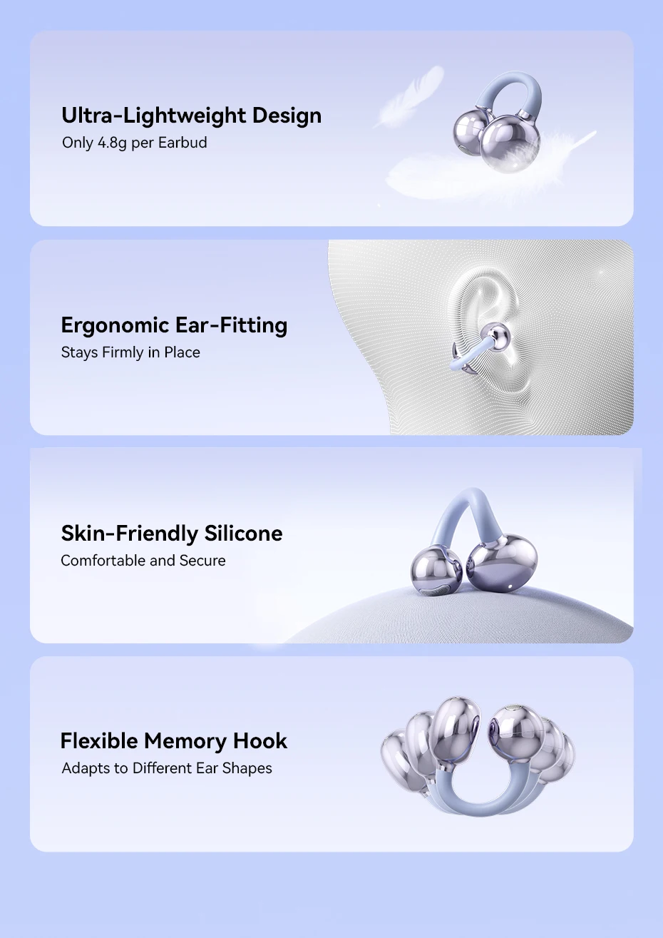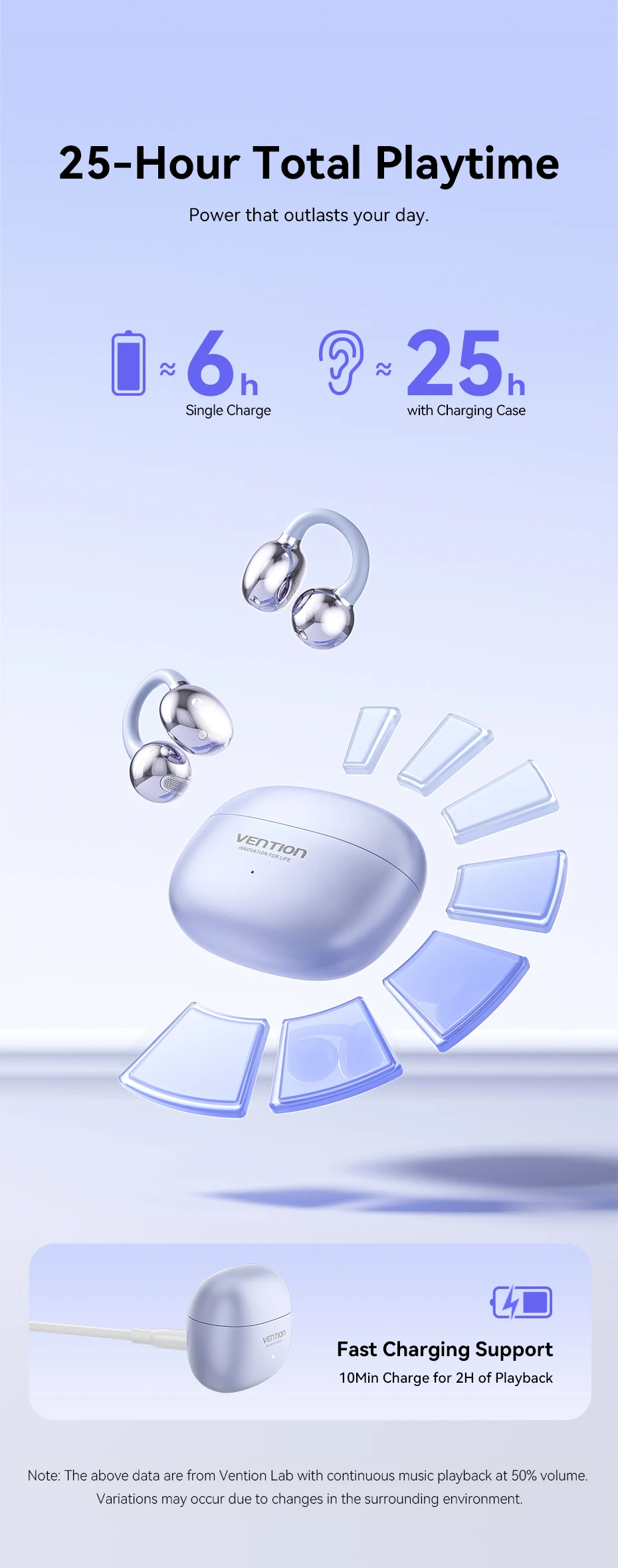 Vention ECHO CLIP A1 Auriculares inalámbricos con clip de oreja abierta Bluetooth 5,4 ENC Auriculares deportivos con micrófono con ganchos para la oreja y gancho para la oreja