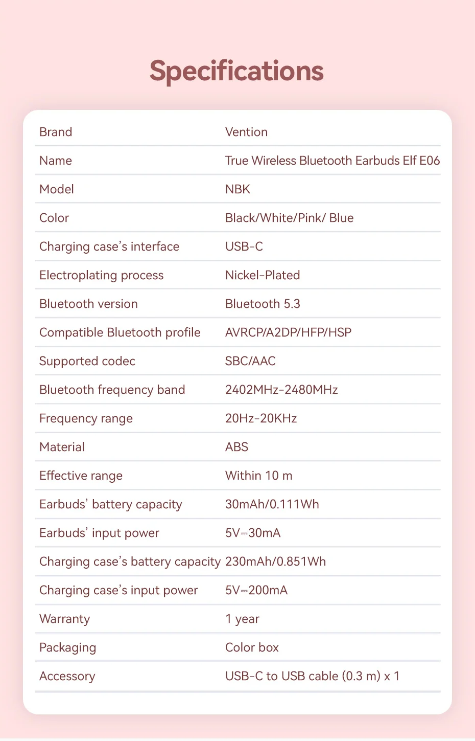 Nombre: Auriculares inalámbricos Vención Elf E06
