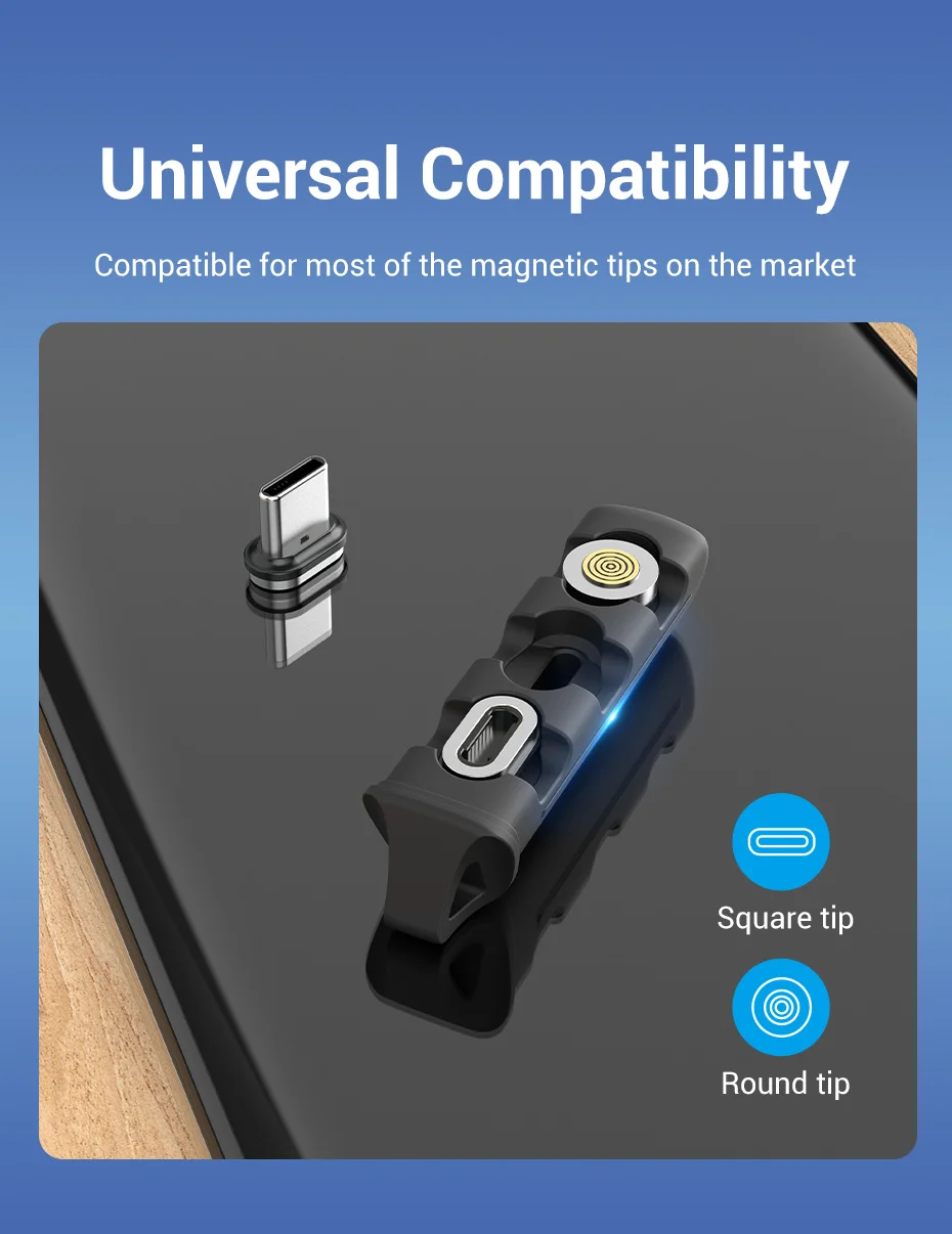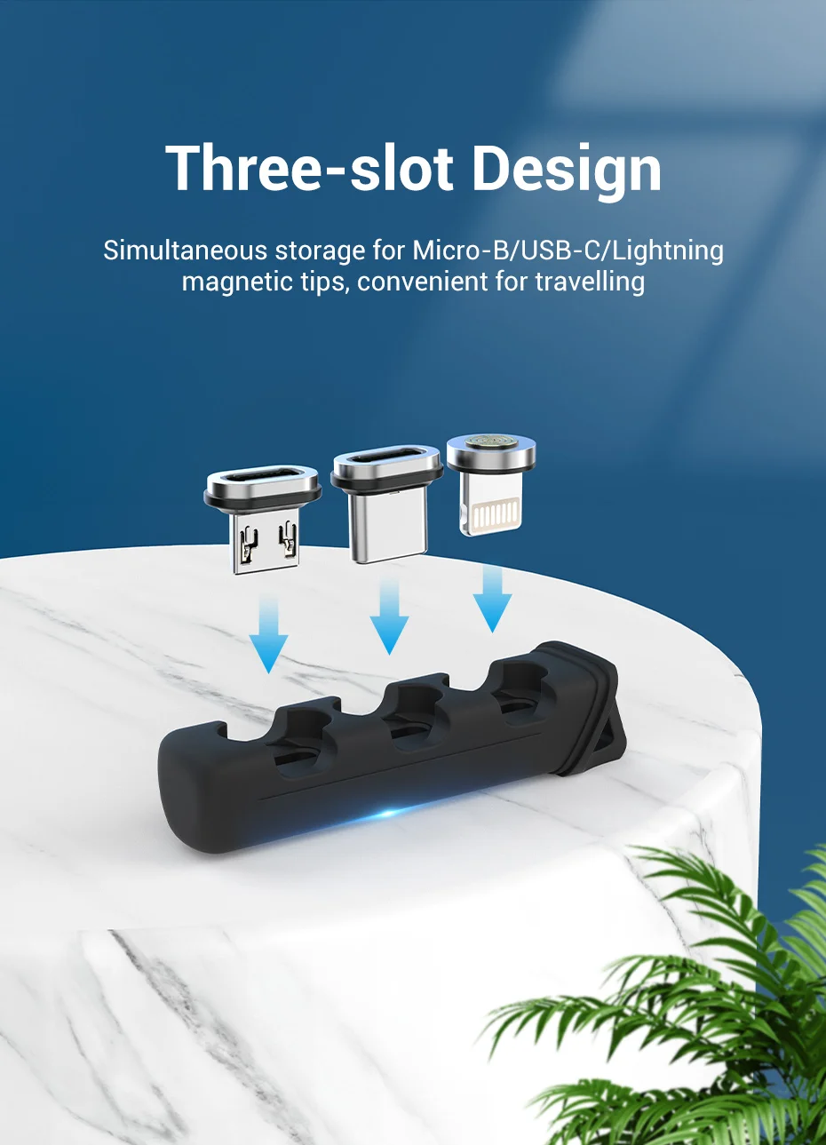 Almacenamiento simultáneo para diferentes puntas magnéticas Micro-B/Lightning, conveniente para viajar