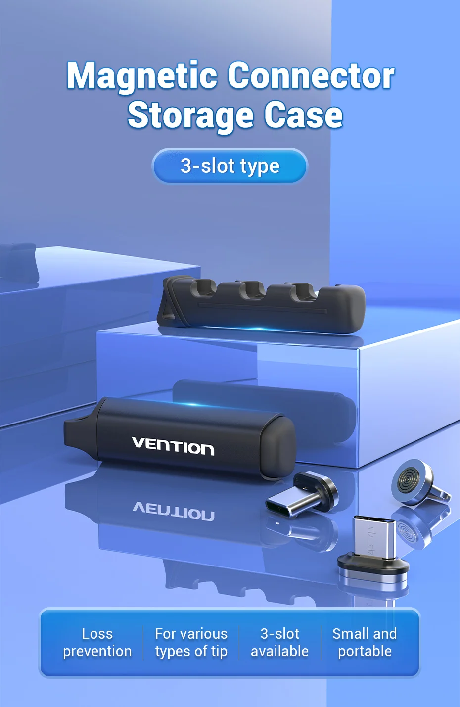 Estuche de tamaño pequeño para el almacenamiento de tres conectores magnéticos, prevención de pérdidas de las puntas de carga