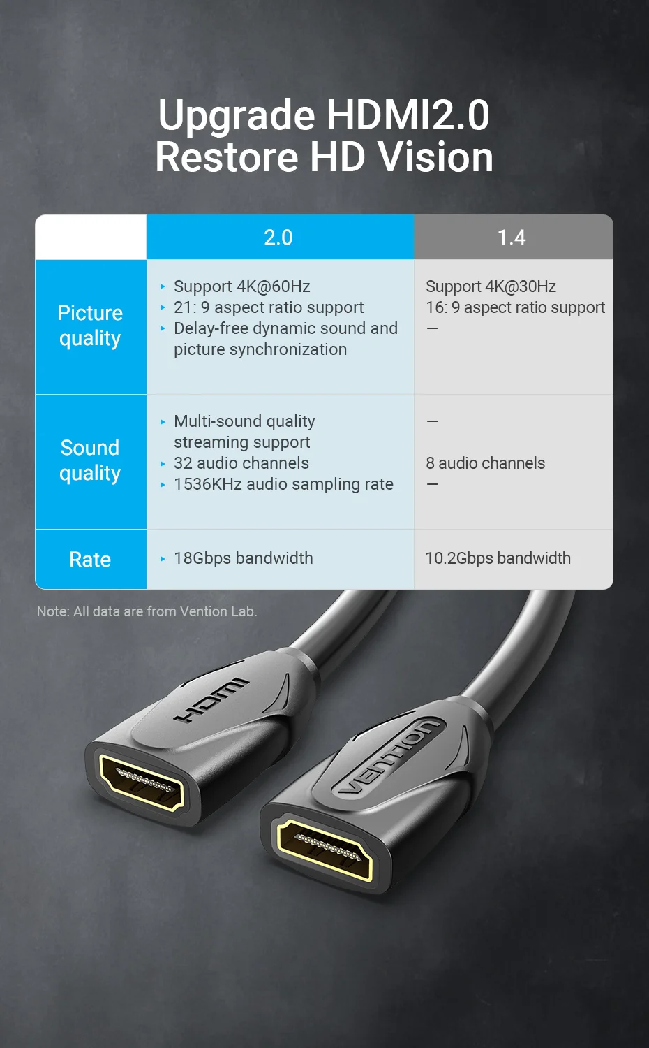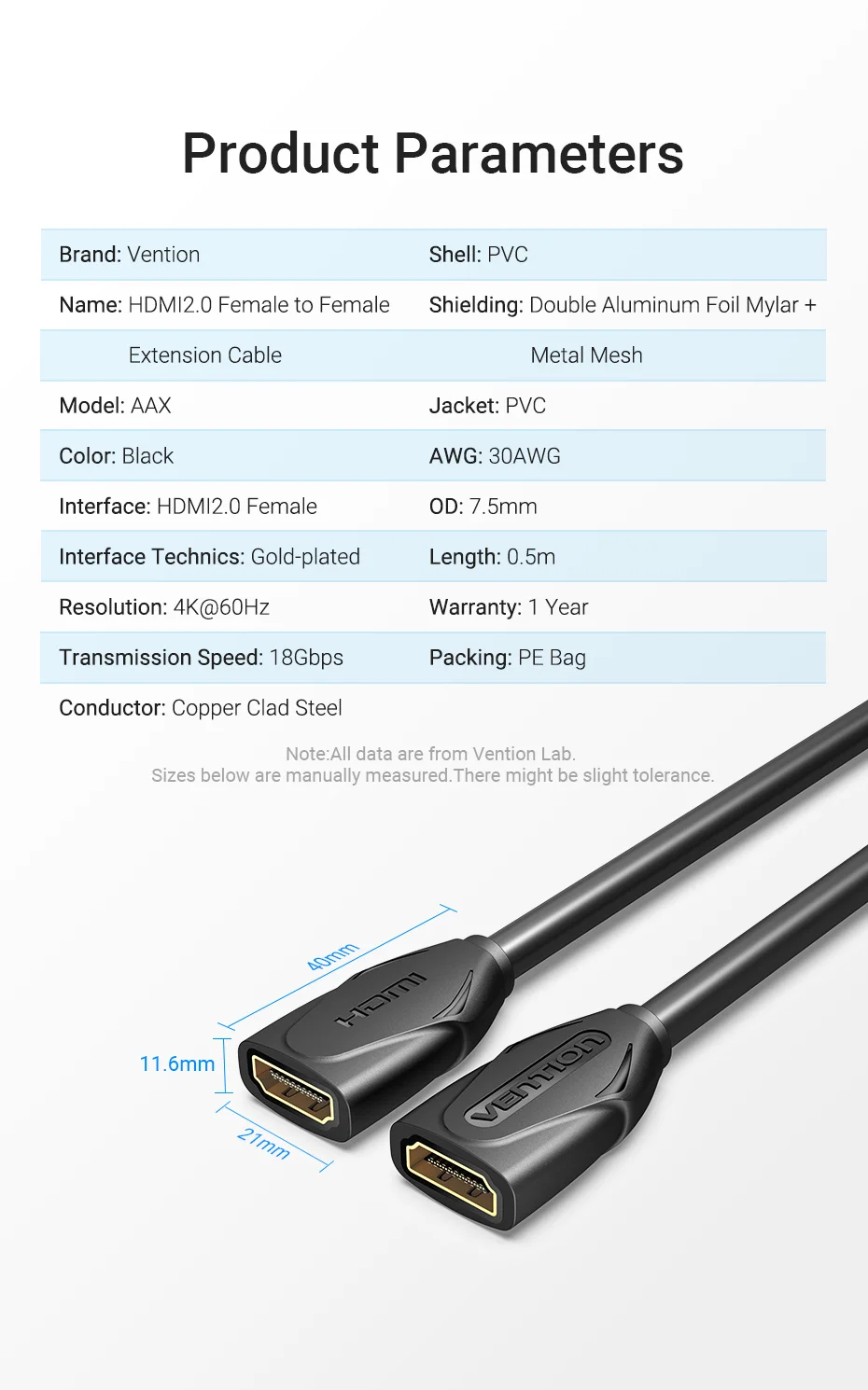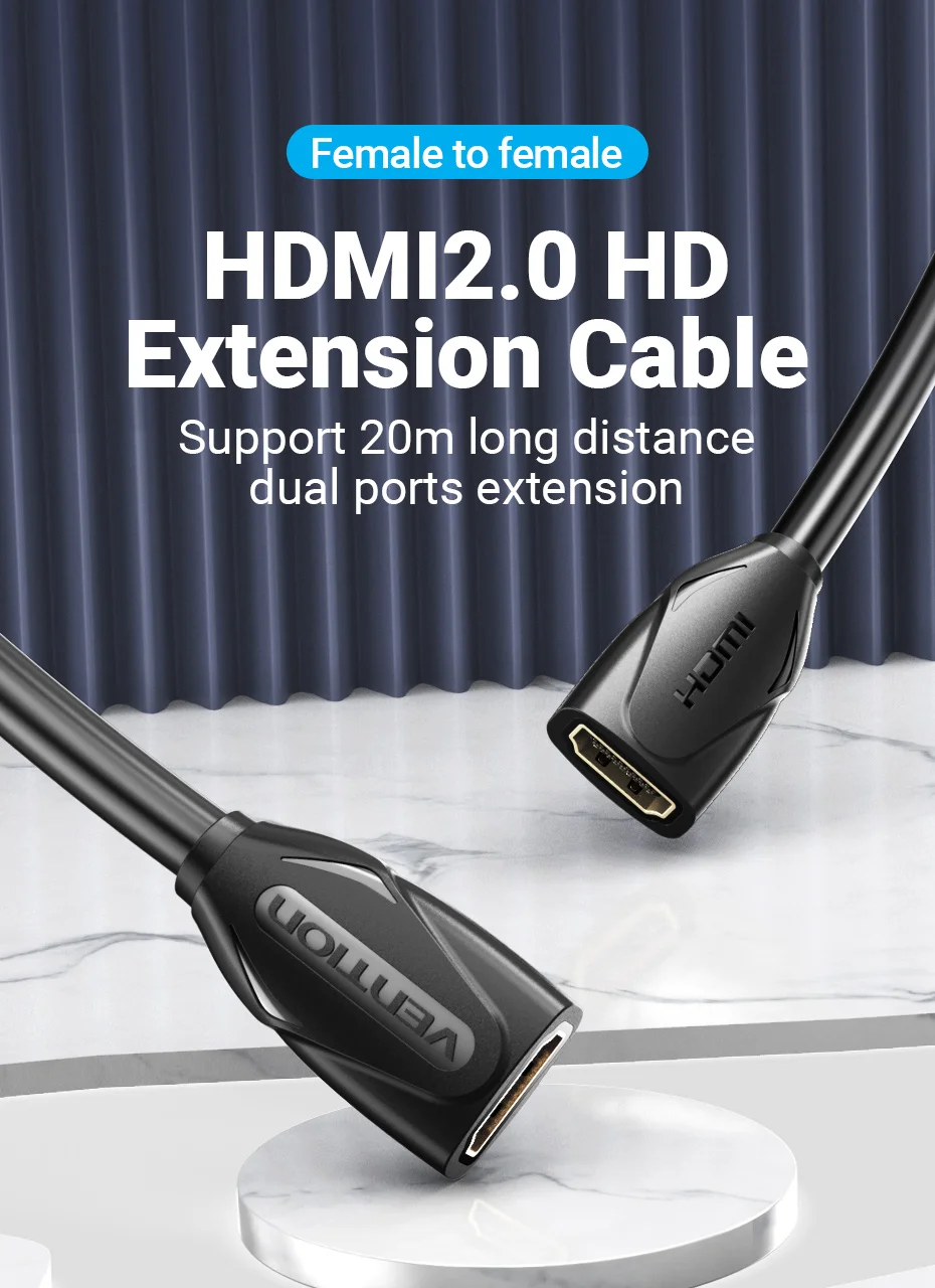 Comprar Vention-extensor de Cable HDMI 2,0 hembra a hembra, 4K/60Hz, para PS4/3, proyector HDTV, 2,0