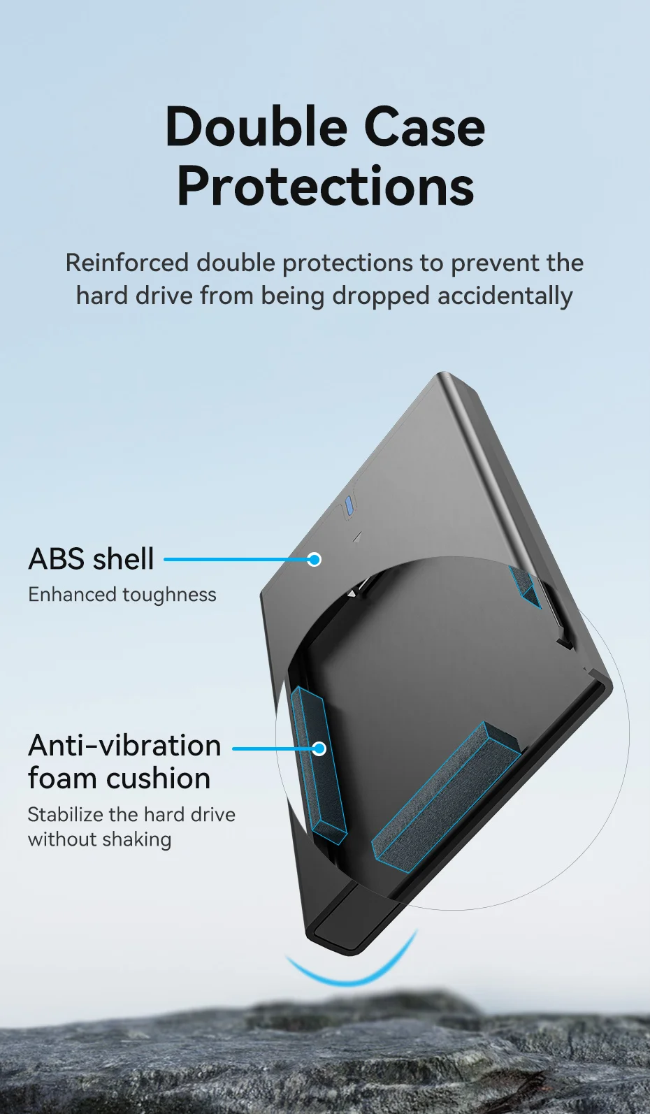 Protecciones dobles reforzadas para evitar que el disco duro se caiga accidentalmente