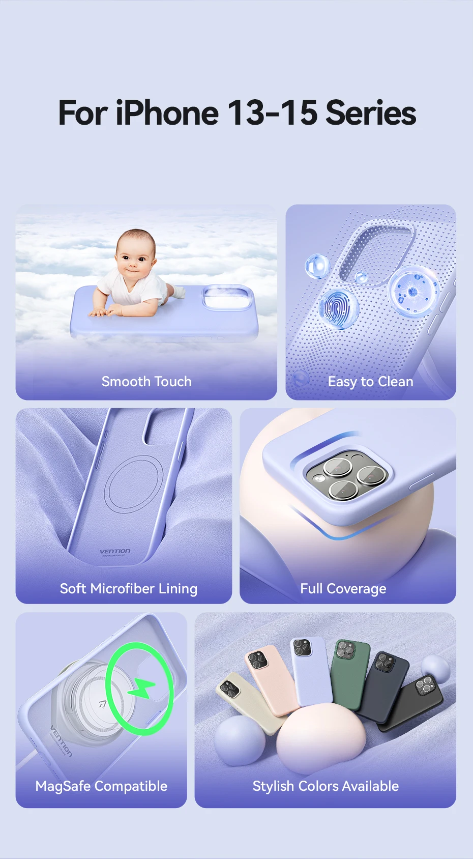 Comprar Vention-funda magnética de silicona líquida para iPhone 15, 14, 13, cubierta de carga inalámbrica ProMax para teléfono con carga inalámbrica magnética