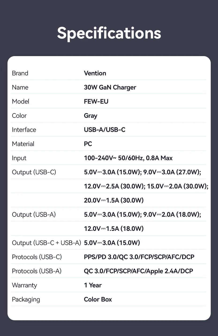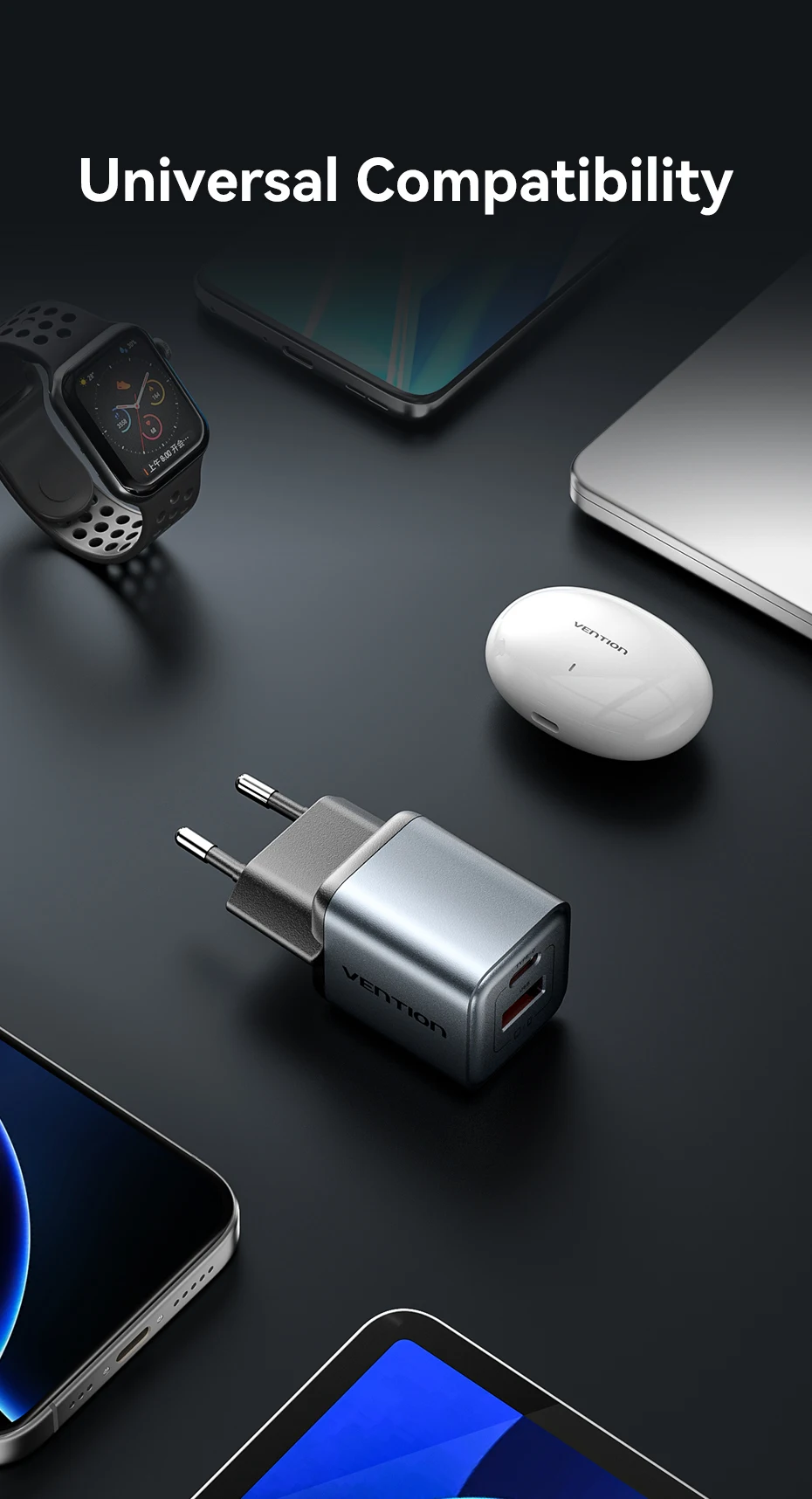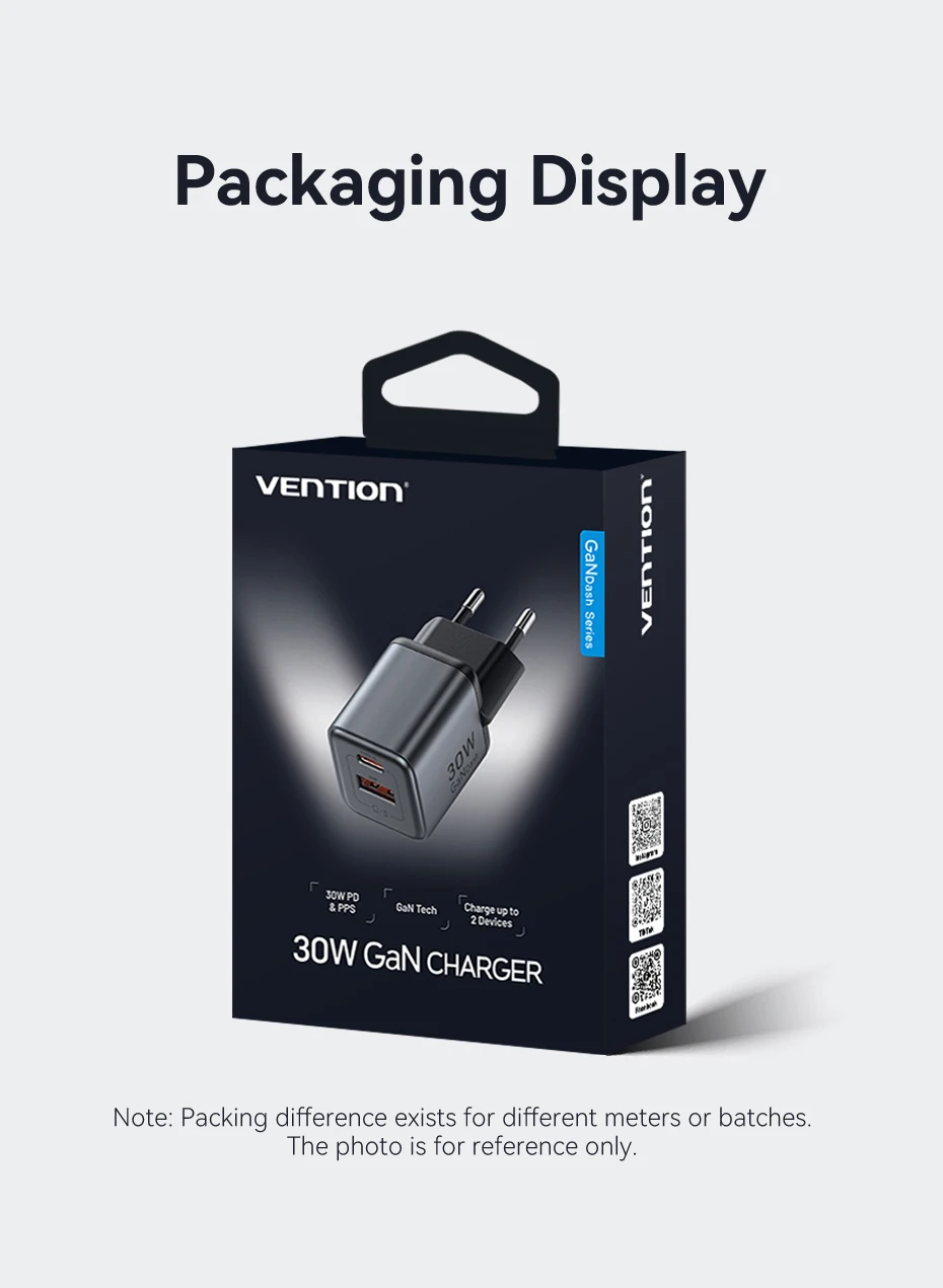 Comprar Vention GaN 30W cargador rápido para iPhone 16 15 14 13 PD3.0 cargador para iPad Pro Xiaomi Samsung USB tipo C carga USB para teléfono móvil