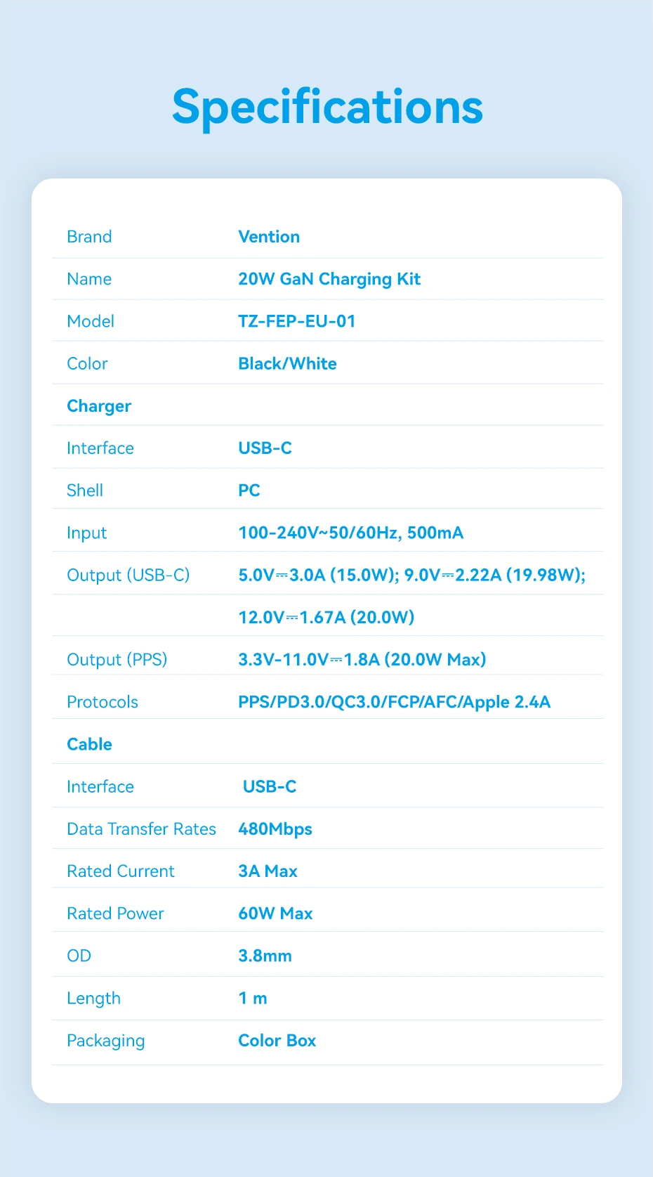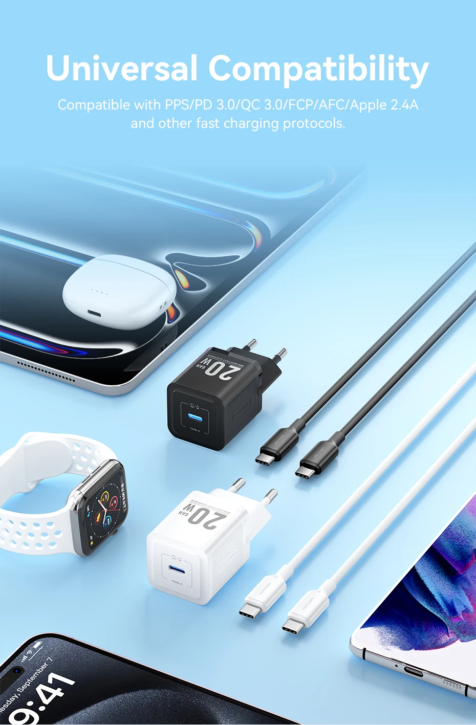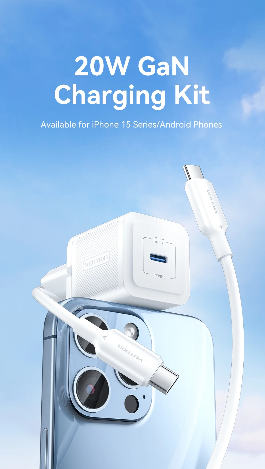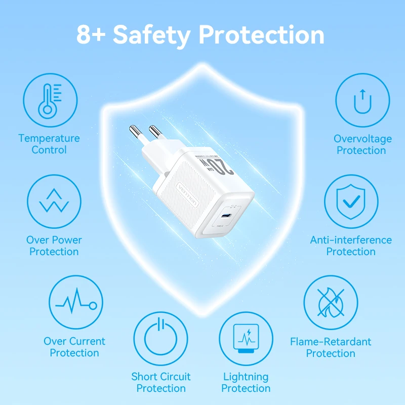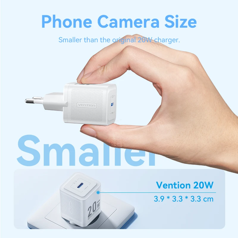 Comprar Vention GaN cargador USB tipo C 20W PD carga rápida teléfono QC 3,0 cargadores rápidos para iPhone 14 13 12 11 Pro Max Mini iPad