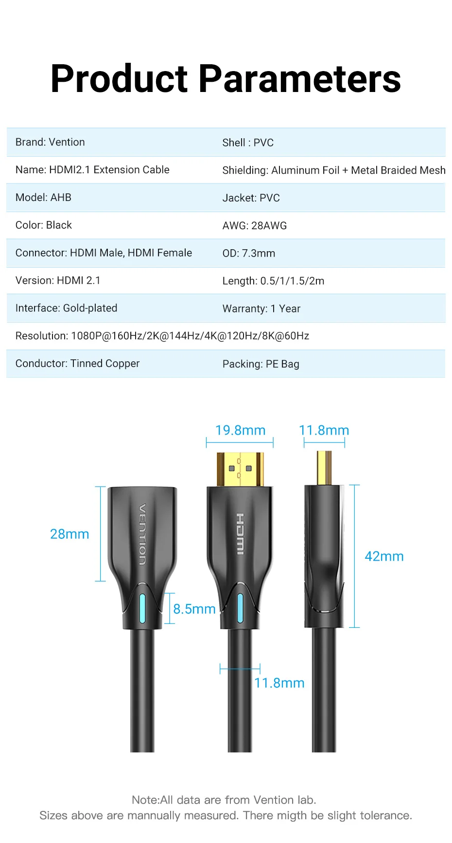 Comprar Vention HDMI 2,1 Cable de extensión 8K HDMI 2,1 Cable extensor 48Gbps HDMI macho a hembra para PS4 HDMI Switch extensor HDMI 2