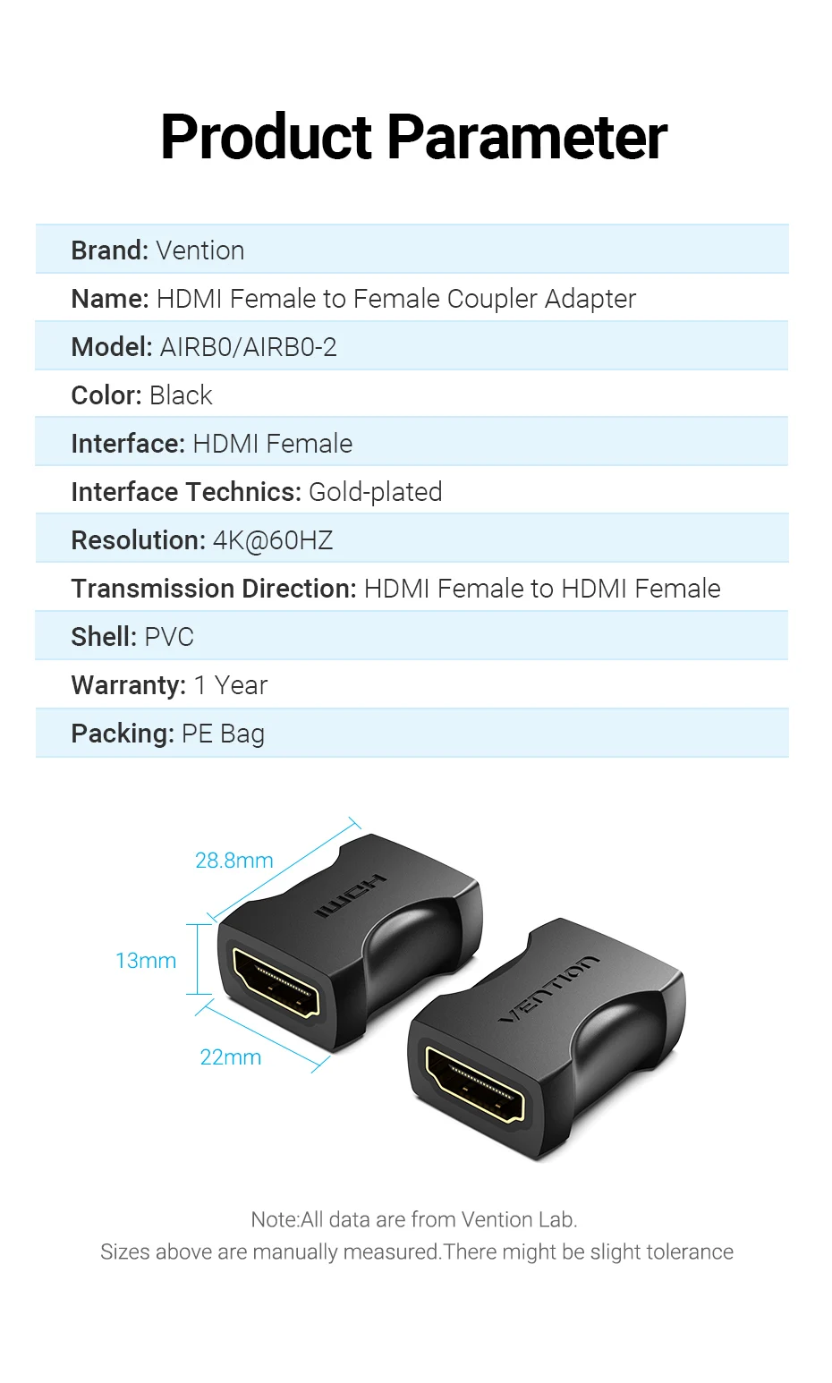 El adaptador hembra HDMI hembra cumple con el estándar HDMI 2,0, admite el paso 4K HDR con cable HDMI 2,0 y resolución de pantalla de hasta 3840x2160, 2560x1600, 2560x1440, 1920x1200, y 1080P.