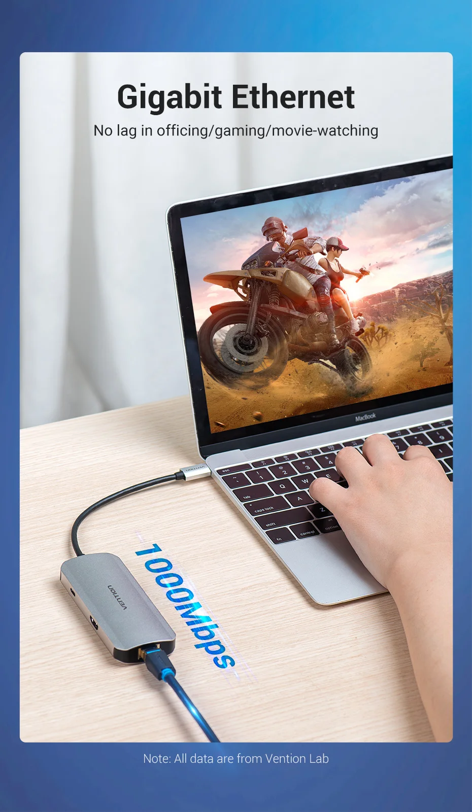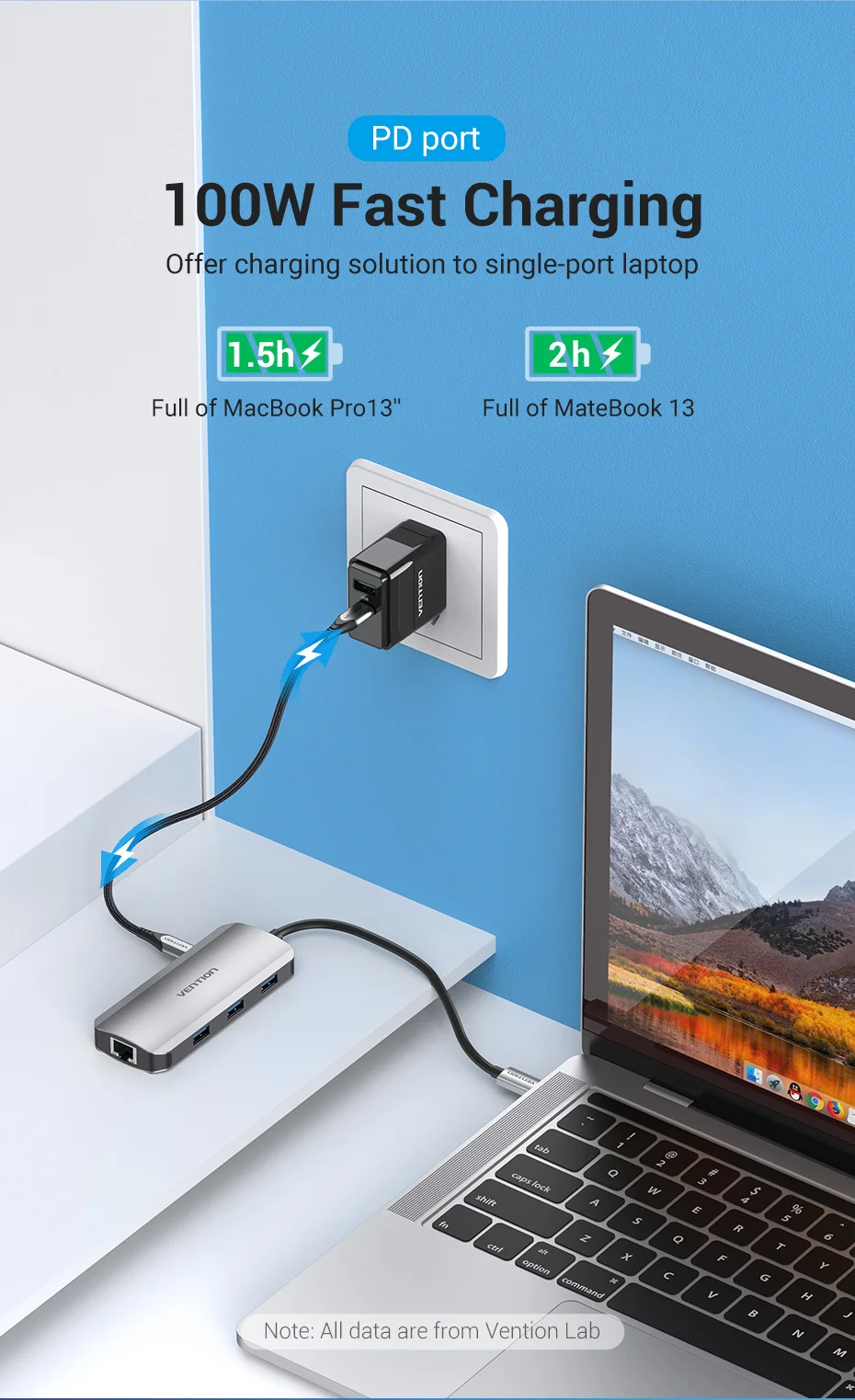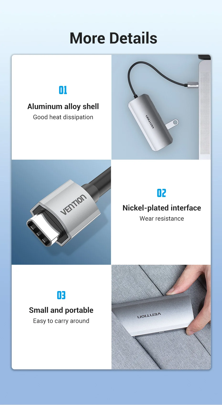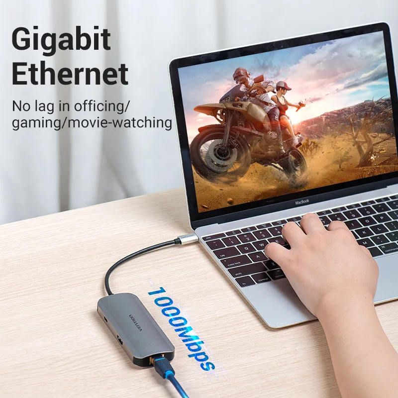Comprar Vention-HUB USB C 6 en 1 a HDMI, USB 3,0, RJ45, PD100W, divisor USB para ordenador portátil, Macbook Pro Air, iPad, teléfono, estación de acoplamiento Android