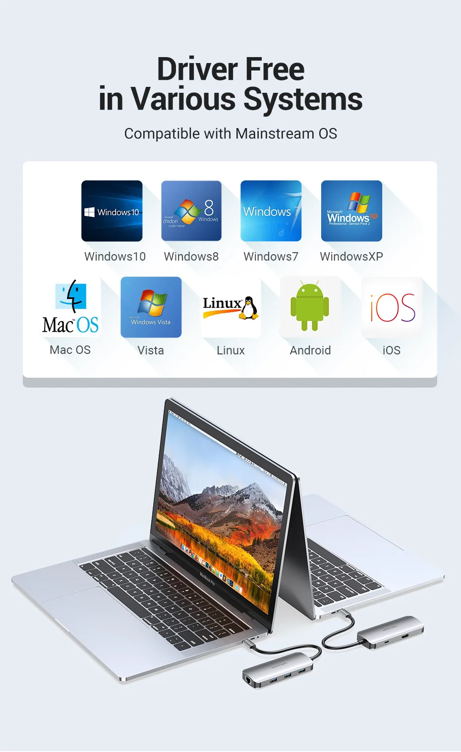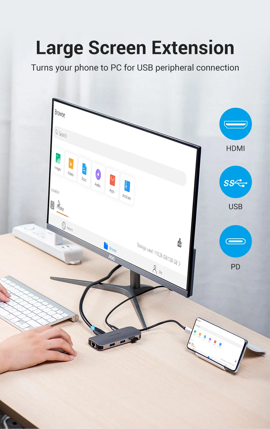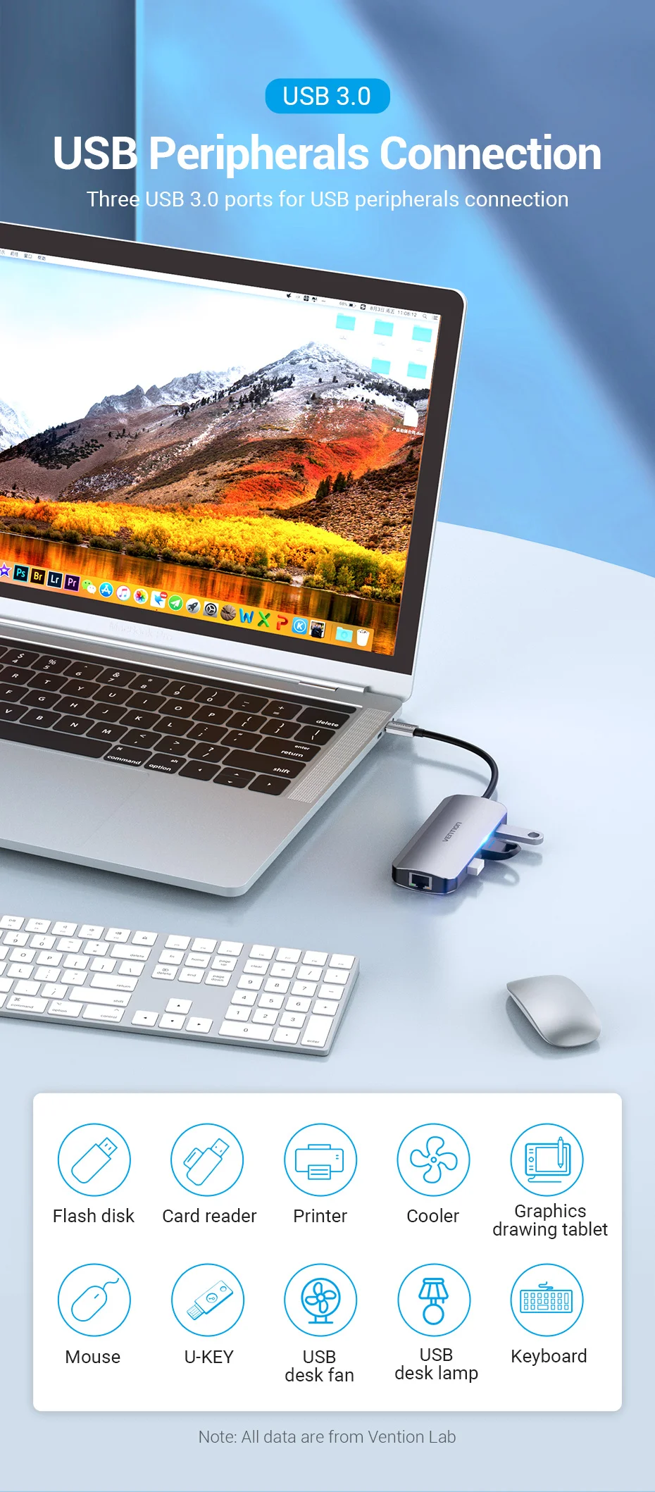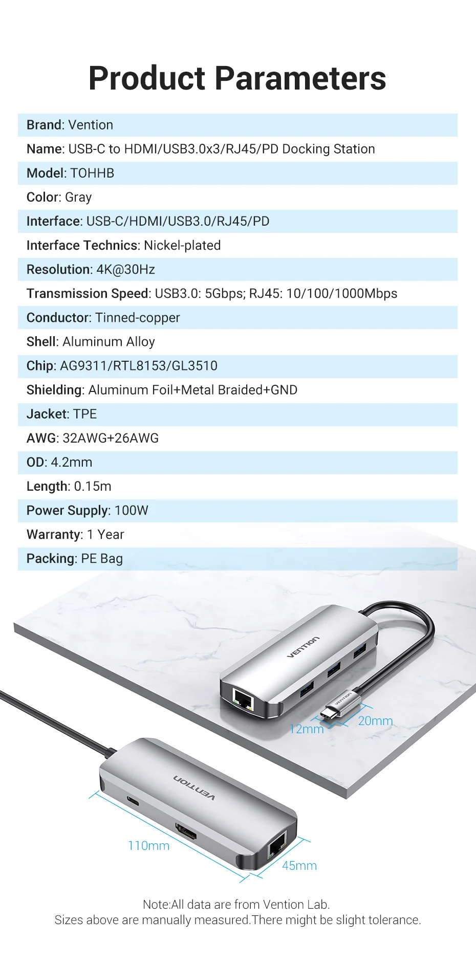 Comprar Vention-HUB USB C 6 en 1 a HDMI, USB 3,0, RJ45, PD100W, divisor USB para ordenador portátil, Macbook Pro Air, iPad, teléfono, estación de acoplamiento Android