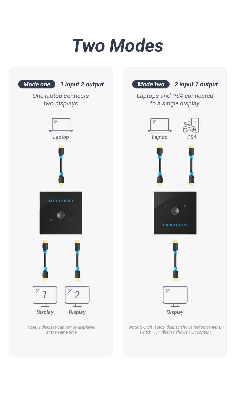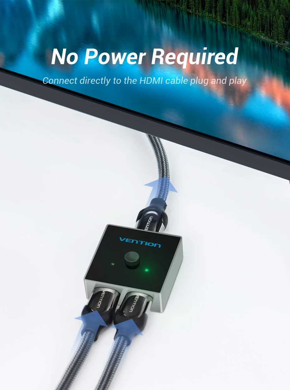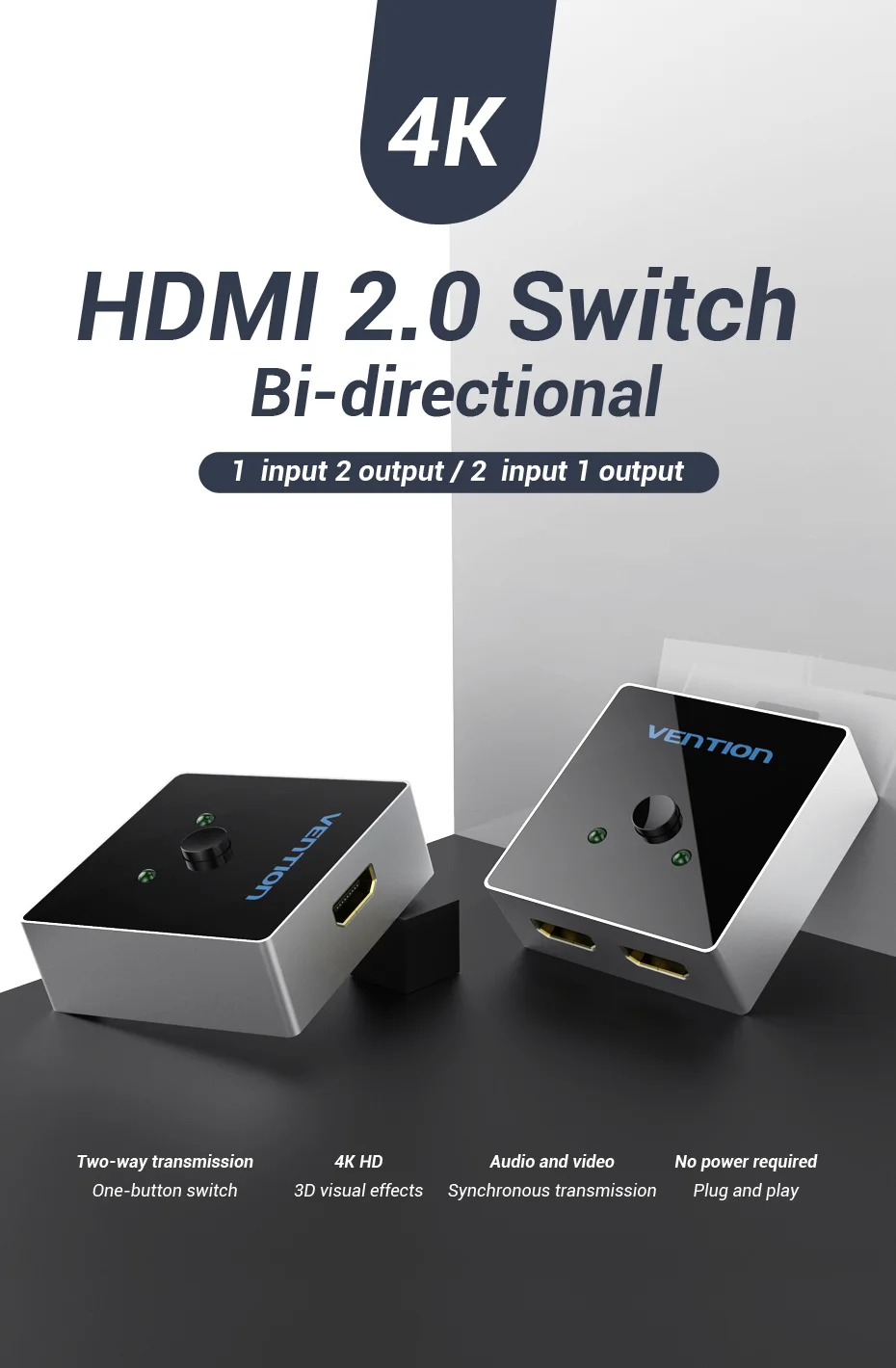 Comprar Vention-interruptor HDMI bidireccional 2,0, divisor HDMI 1x 2/2x1, Adaptador 2 en 1, convertidor de salida para PS4 Pro/4/3 TV Box, conmutador HDMI 4K
