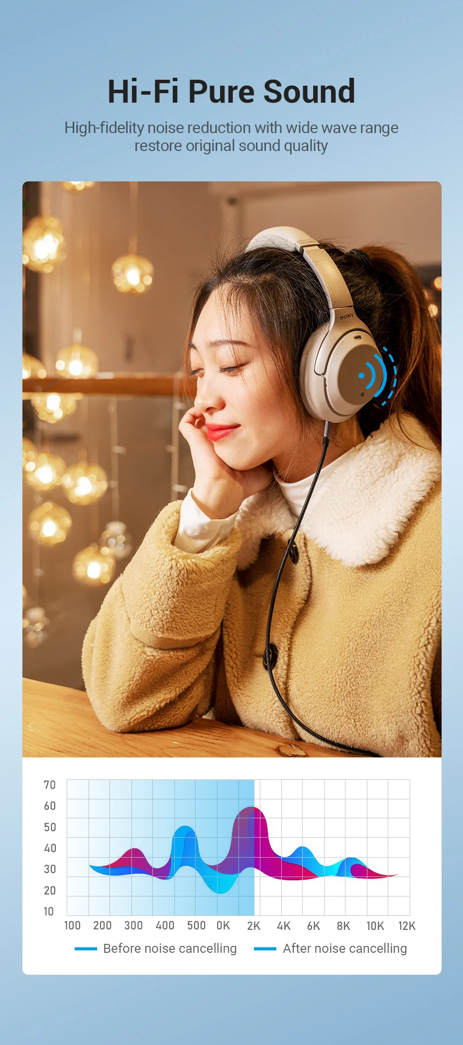 Reducción de ruido de alta fidelidad con amplio rango de onda que restaura la calidad del sonido original