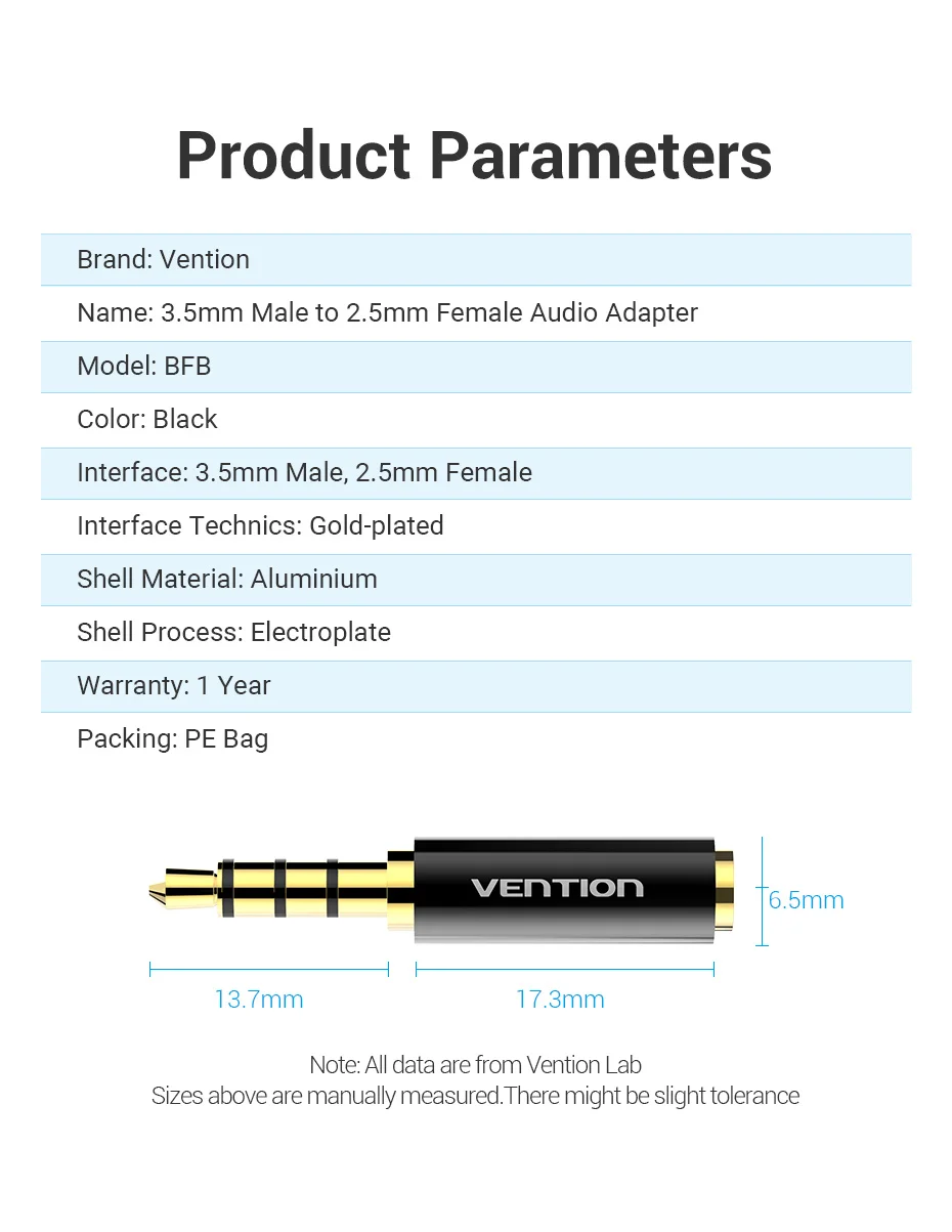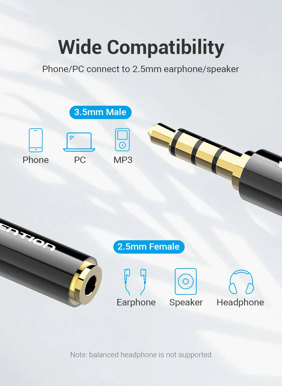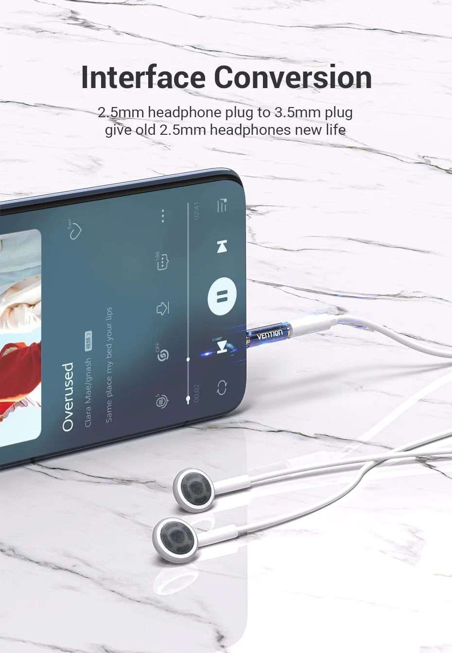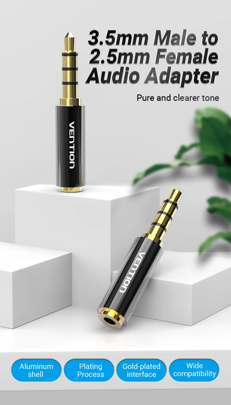 Comprar Vention Jack-Adaptador de Audio de 3,5mm a 2,5mm, conector macho a hembra para altavoz, portátil, auriculares, Conector de Cable auxiliar 2,5 a 3,5