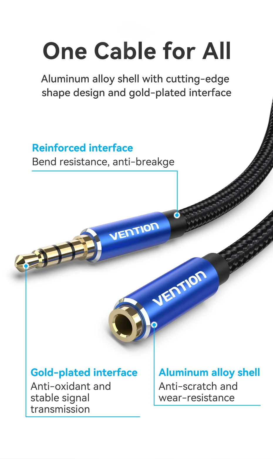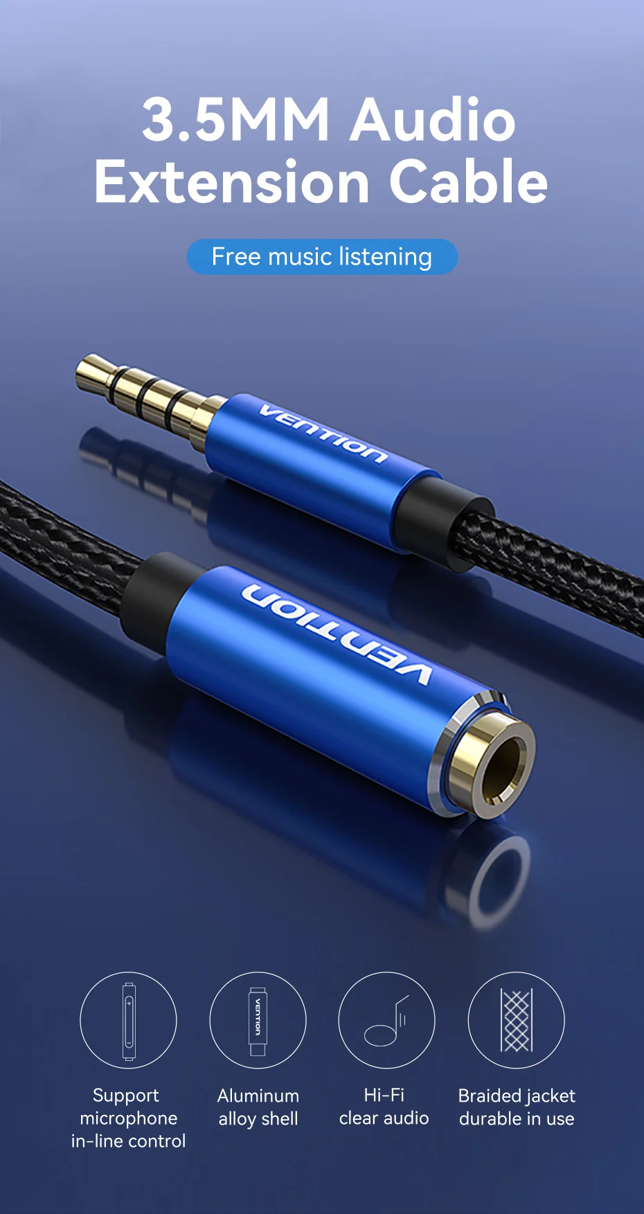 Comprar Vention Jack Cable de extensión auxiliar de 3,5mm para coche, portátil, Mini PC, TV, Xiaomi, Huawei, estéreo, conector de Audio de 3,5mm, Cable de altavoz para auriculares