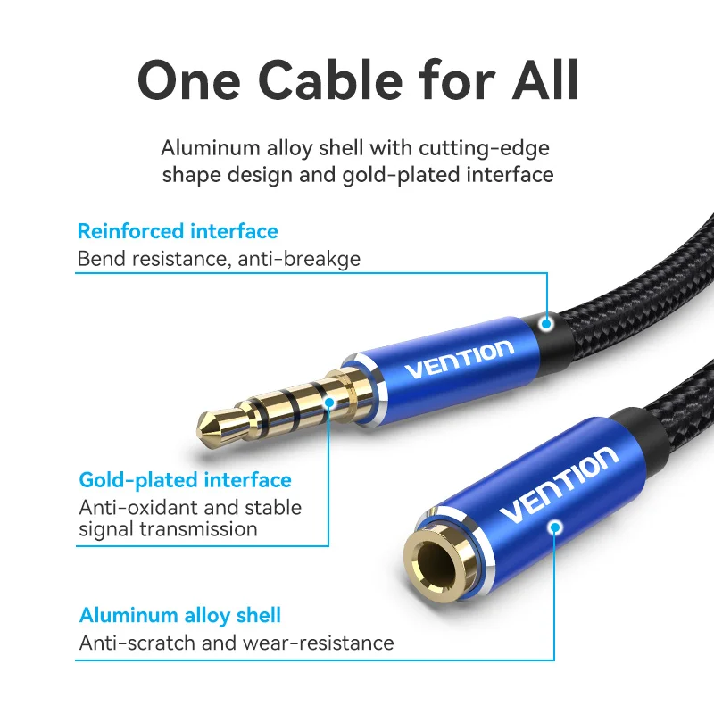 Comprar Vention Jack-Cable de extensión auxiliar de 3,5mm para coche, portátil, Mini PC, TV, Xiaomi, Huawei, estéreo, 3,5mm, auriculares, altavoz