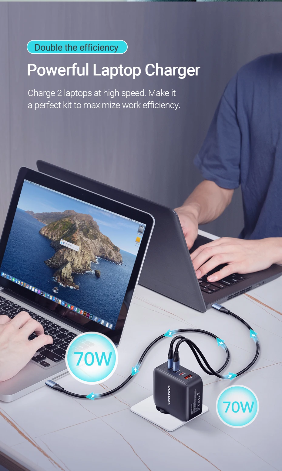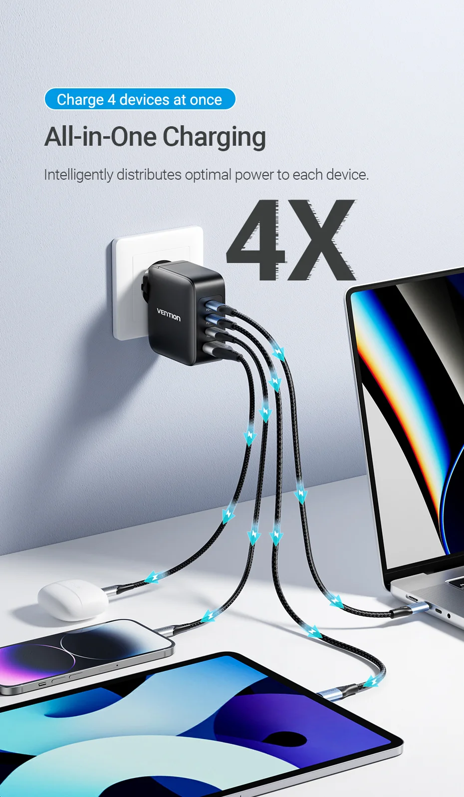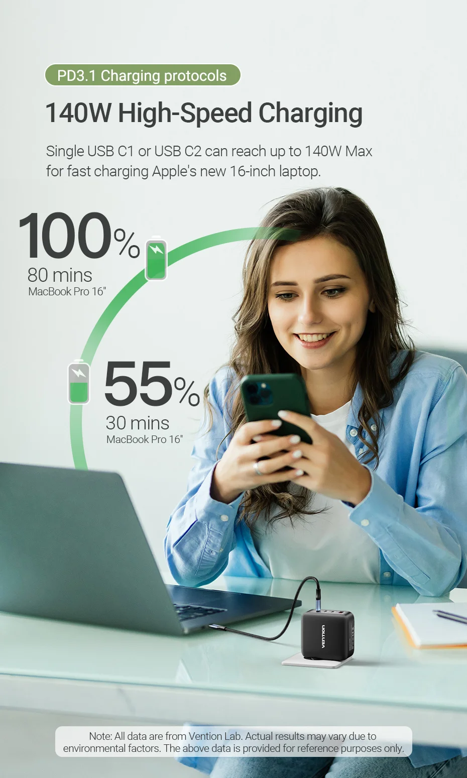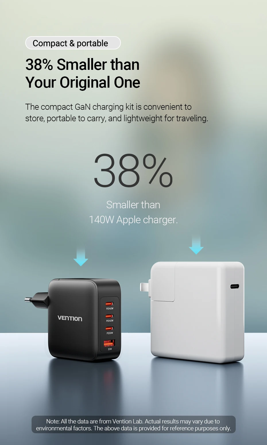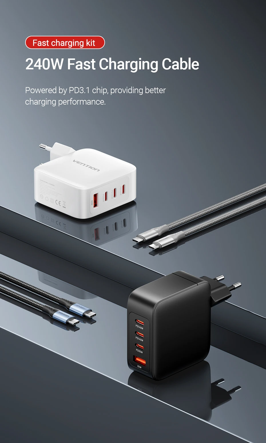 Vention-Kit de cargador GaN de 140W, carga USB tipo C para iPhone16 15 14 13 Pro Max iPad Samsung portátiles PD3.0 QC4.0, cargador rápido para teléfono
