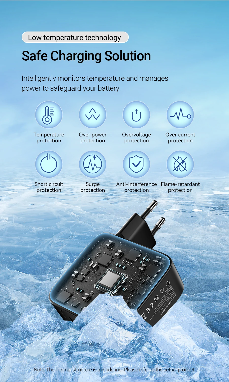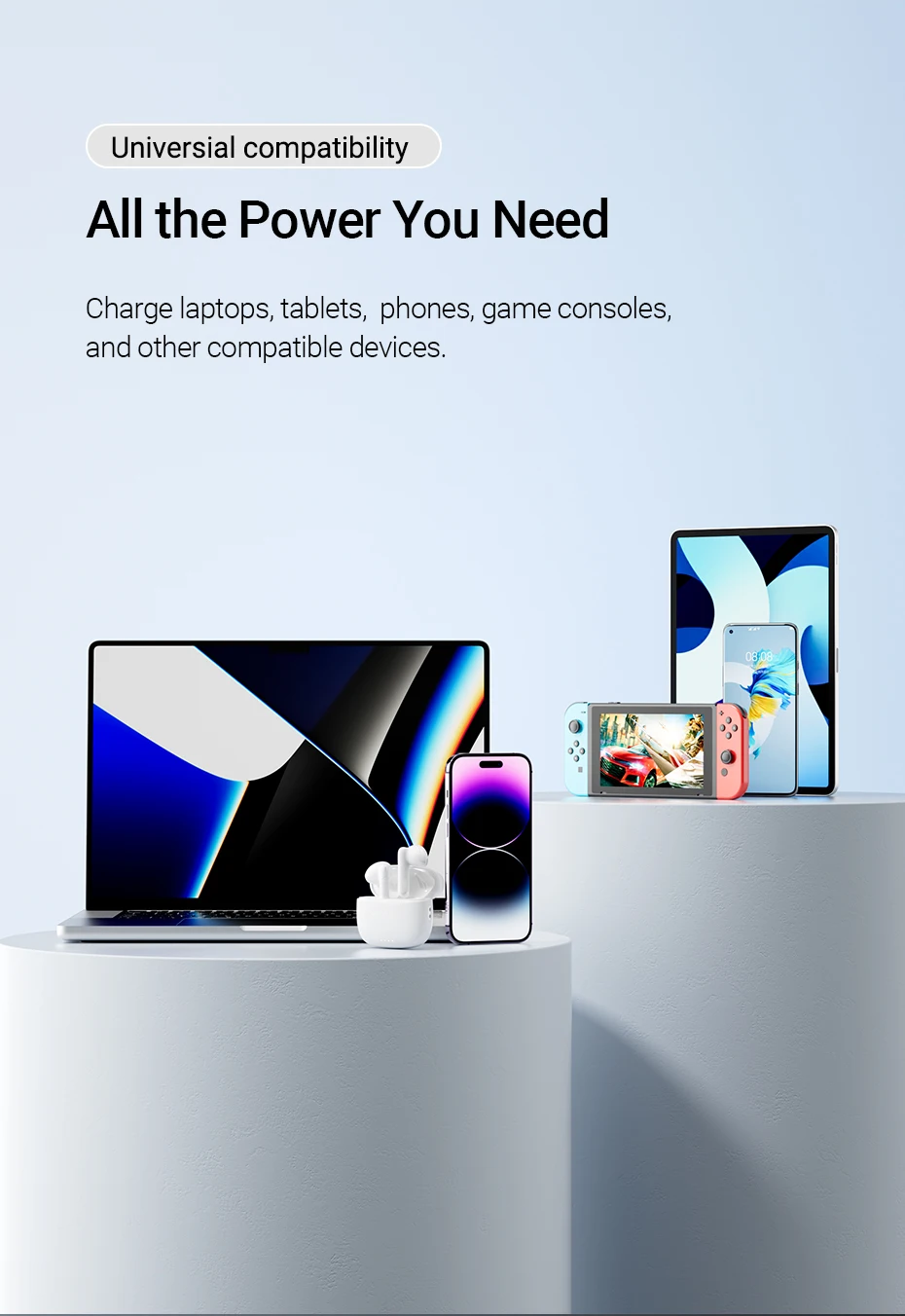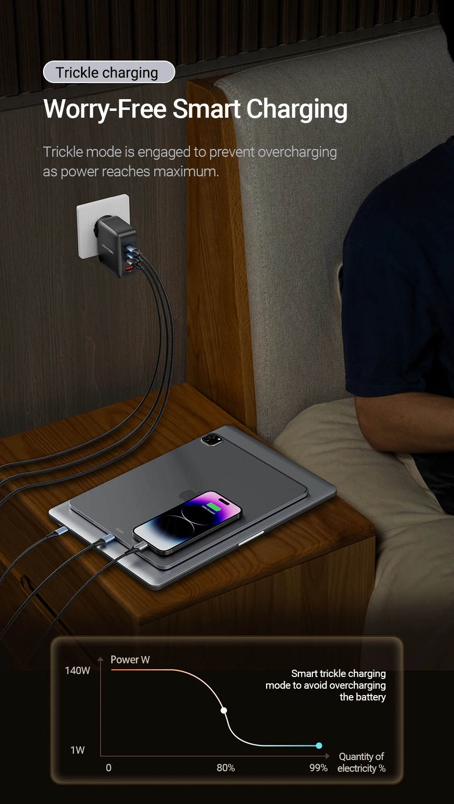 Bastante pequeño para un cargador de 4 puertos y 140W. Pero un poco pesado con 235 gramos. Probado con una salida de 95 vatios en C1 y C2, funciona perfectamente. ¡Recomendado!
