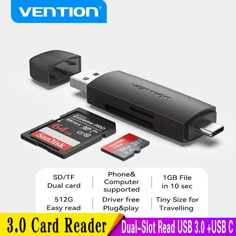 Comprar Vention-lector de tarjetas 2 en 1, adaptador de tarjeta de memoria OTG, USB 3,0, tipo C a Micro SD, TF, para ordenador portátil y teléfono
