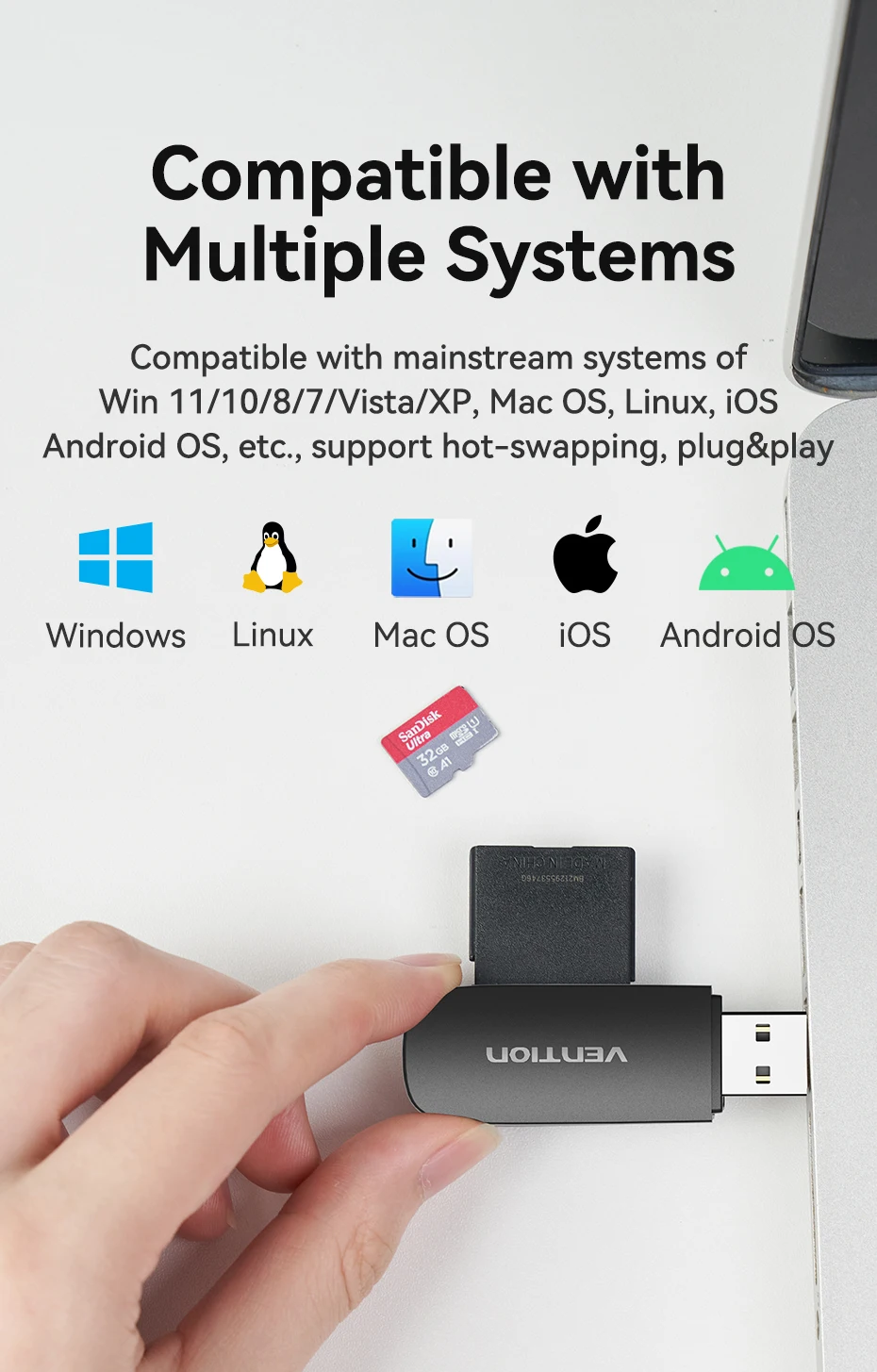 Compatible con los principales sistemas de Windows 11/ 10/8/7/Vista/XP,Mac OS,Linux, iOS,Android OS,etc.